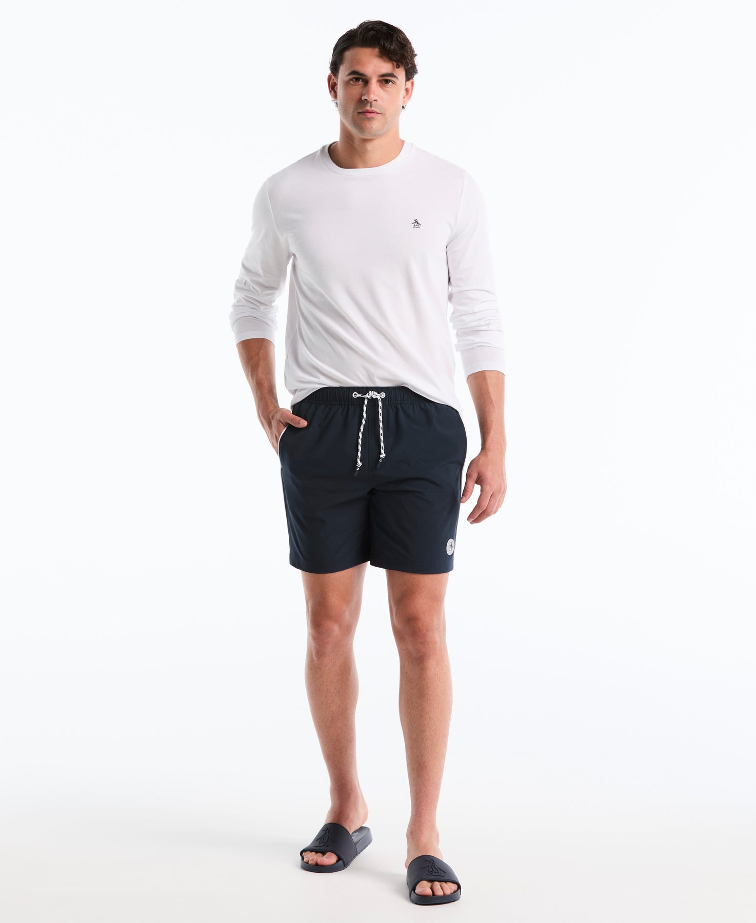 Dive into summer with these sleek men's 7" Earl Tipped Swim Shorts. Crafted from a durable plain weave fabrication with a smart polyester and elastane blend, these quick-dry swim trunks are designed for peak performance and enduring comfort. Enhanced with fantastic stretch, they provide all-day comfort whether you're catching waves or chilling poolside. The slim fit silhouette offers a contemporary vibe, while the iconic Earl tipped detailing adds a dash of sophisticated cool. With a practical 7-inch inseam, these are your go-to men's shorts for sunny escapades.