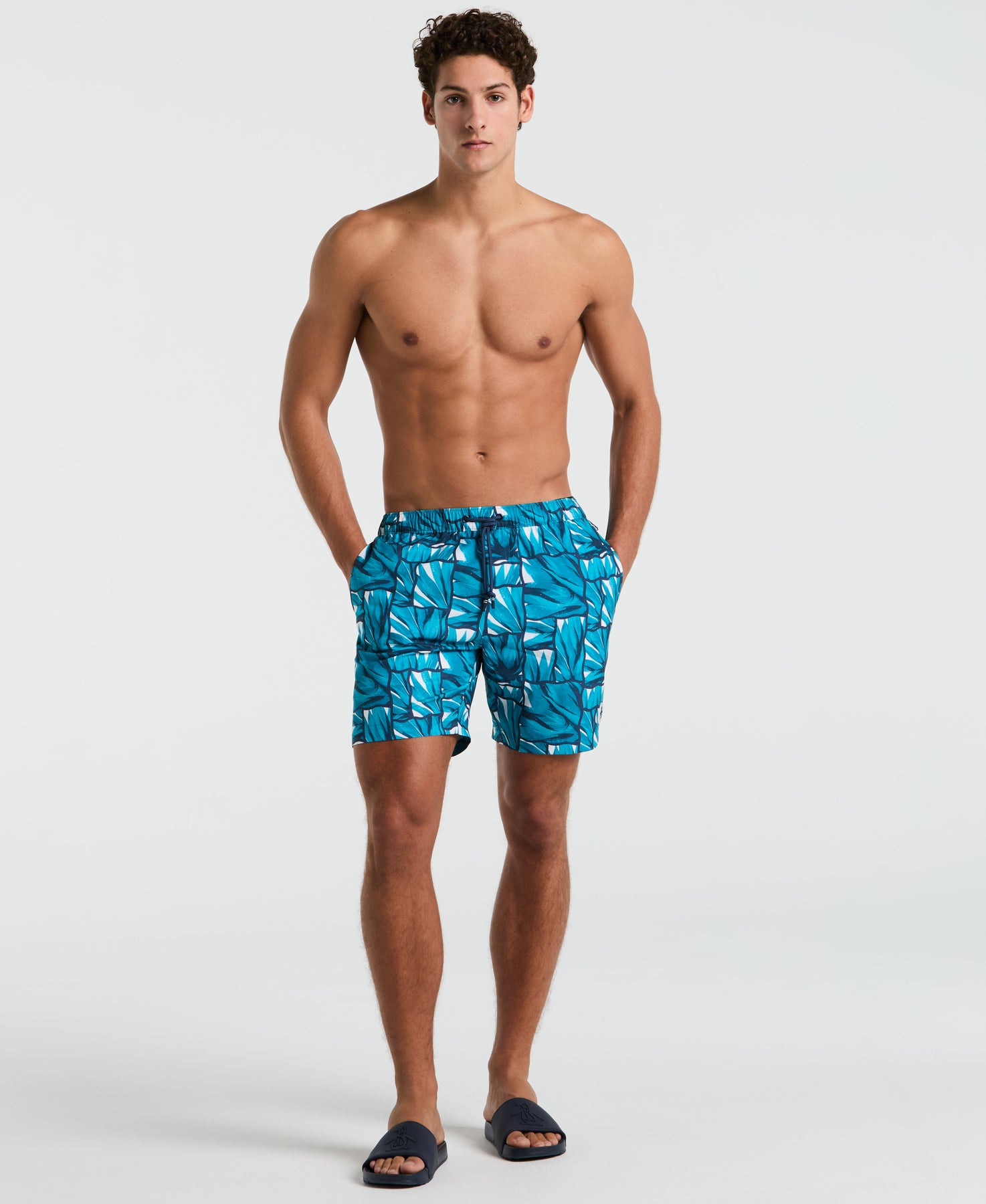 Get ready to make a splash in our 7" Agave Tiles Print Swim Shorts. Made from 55% recycled polyester and 45% polyester, they offer a comfortable stretch and quick-dry feature. With an elastic waistband and tipped drawcord, you can adjust the fit to your liking. Perfect for the beach or pool, and machine washable for easy care.