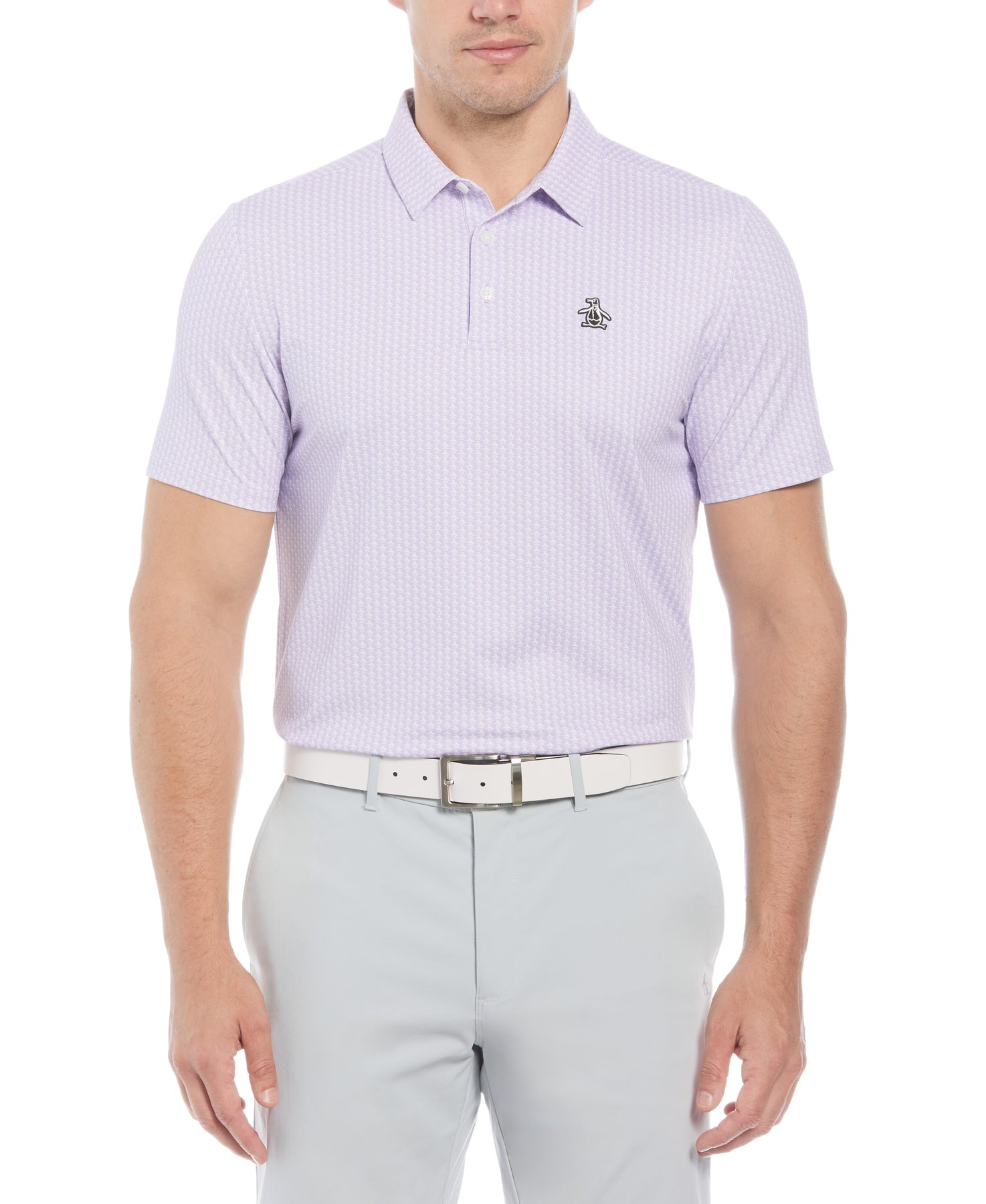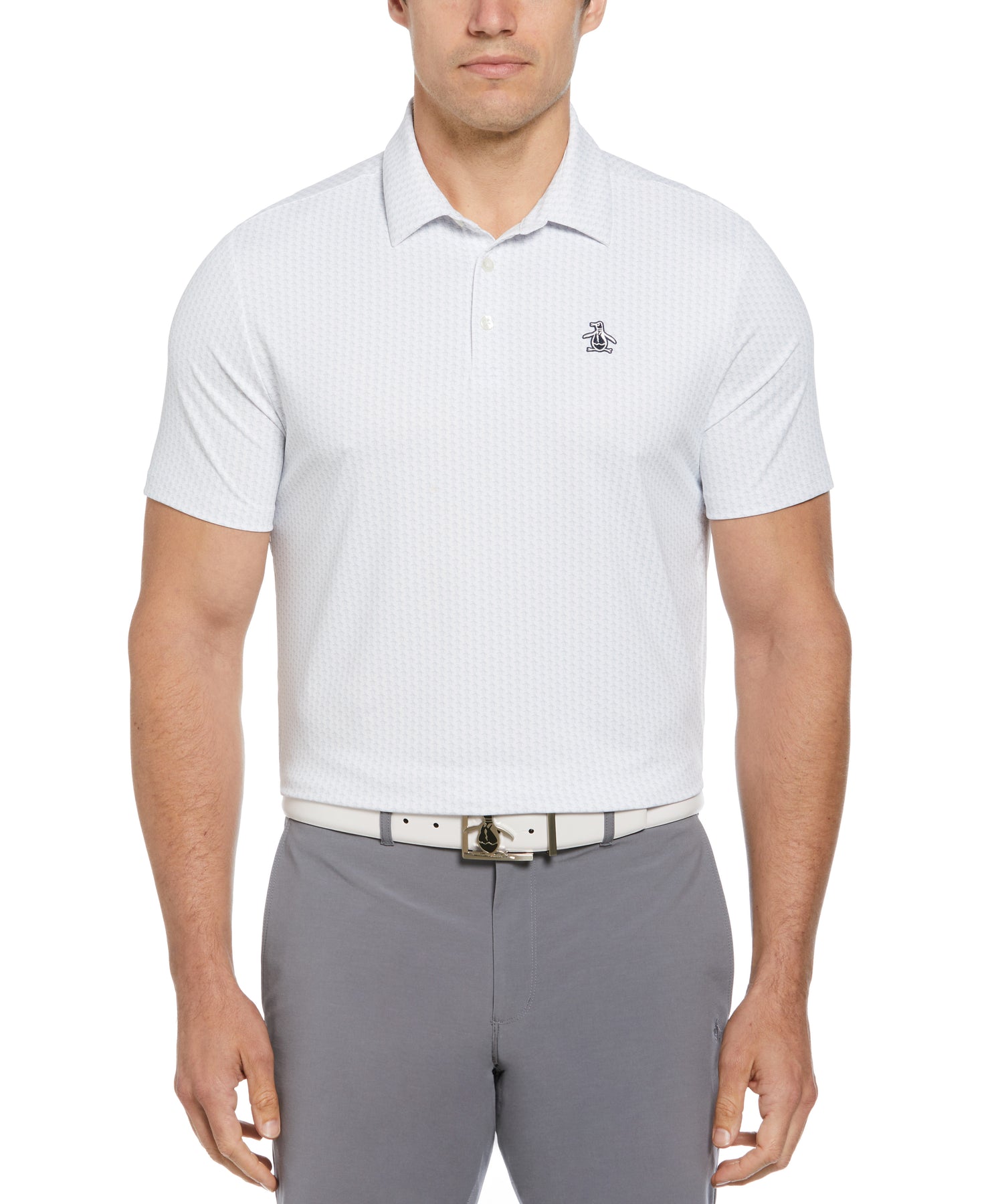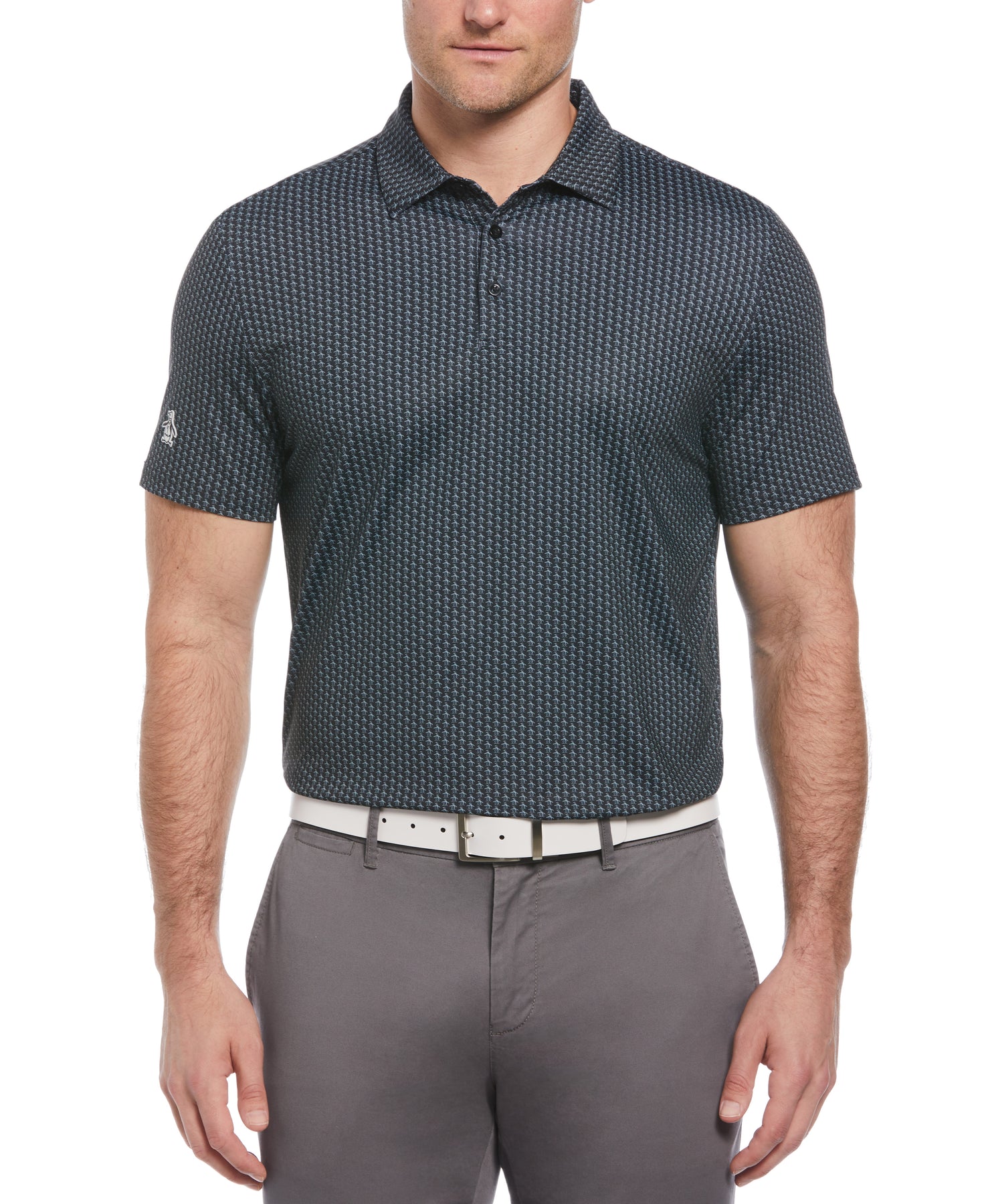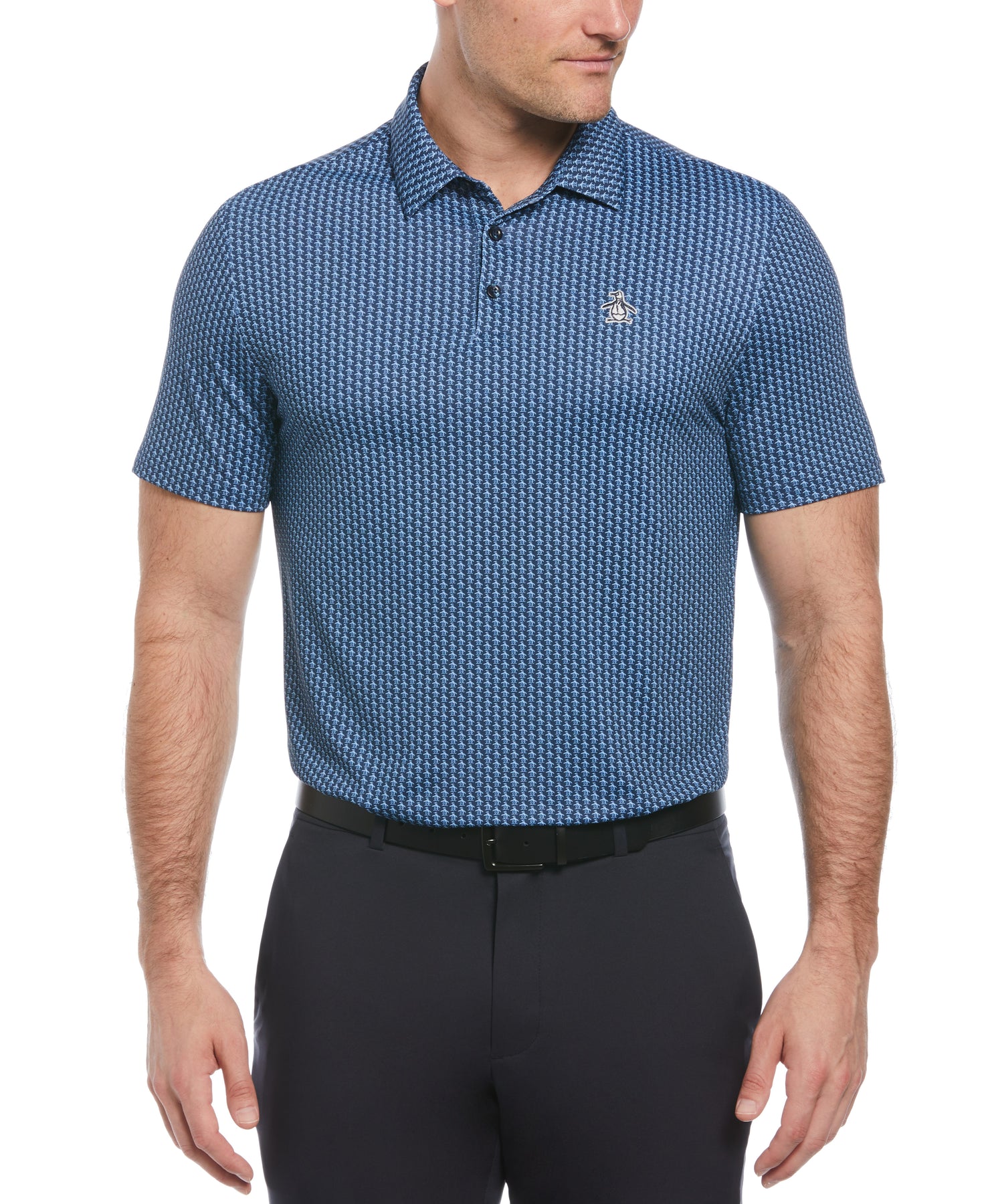 Proving that many Pete's are better than one, this Original Penguin men’s golf polo pops with a fun allover Pete print. The lightweight single-knit fabric is enhanced with stretch to give you the flexible comfort you need to bend and swing. This short sleeve golf shirt is crafted with recycled polyester content to help you reduce your carbon footprint with style.