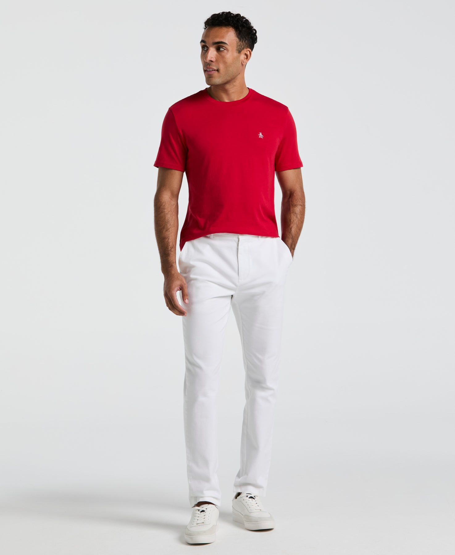 This Original Penguin cotton t-shirt for men has a flattering slim fit that's designed to complement the modern man's casual wardrobe. Made from soft and breathable cotton jersey fabric, this men's t-shirt has a comfortable fit and a soft feel that adds a touch of sophistication to your casual ensemble. The short sleeve shirt effortlessly combines fashion and functionality to upgrade your everyday casual wear.