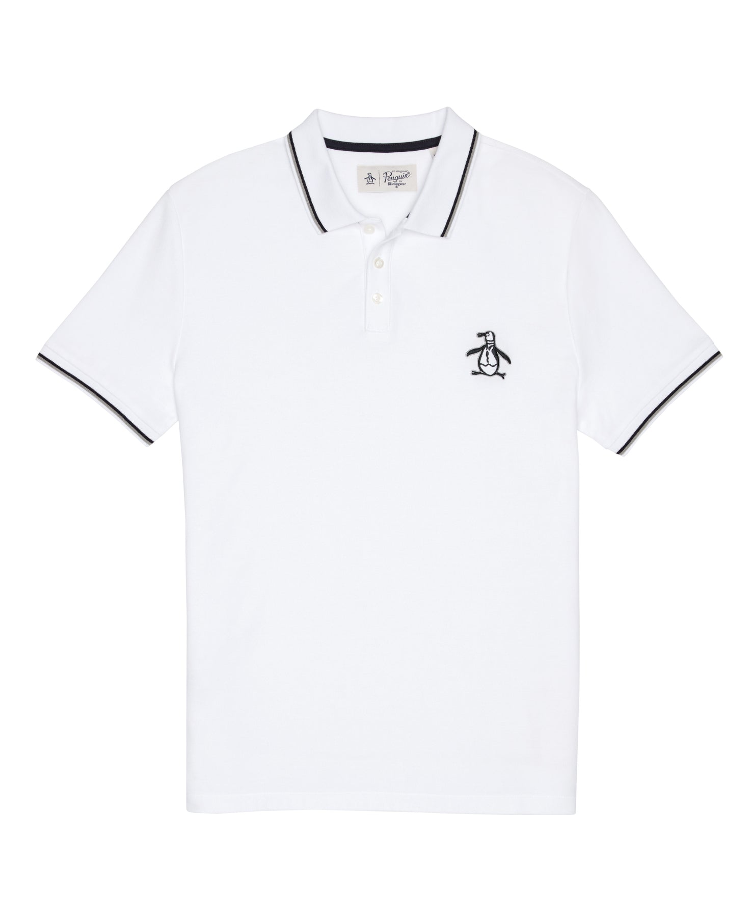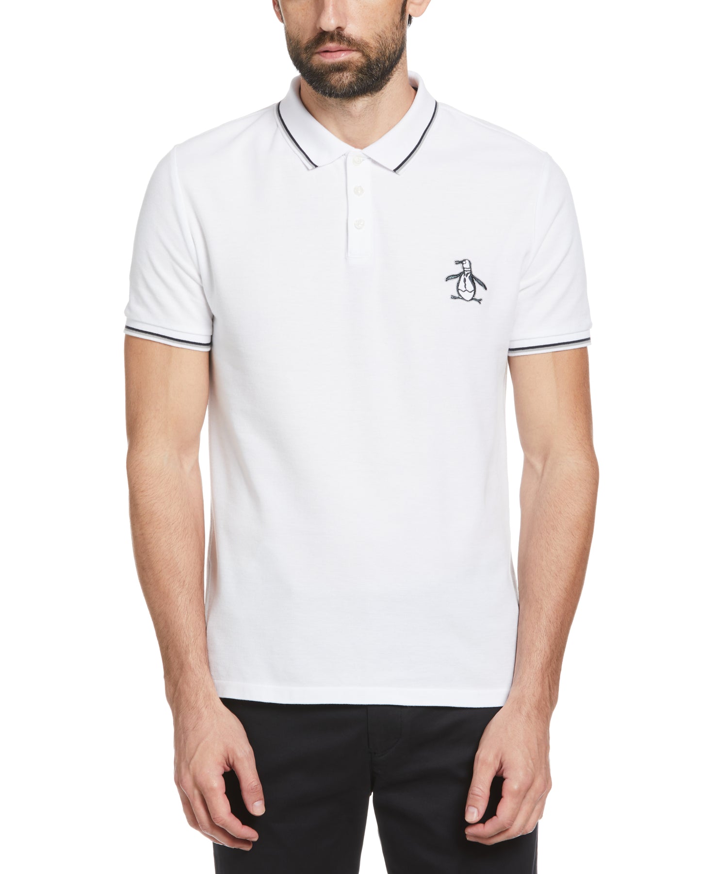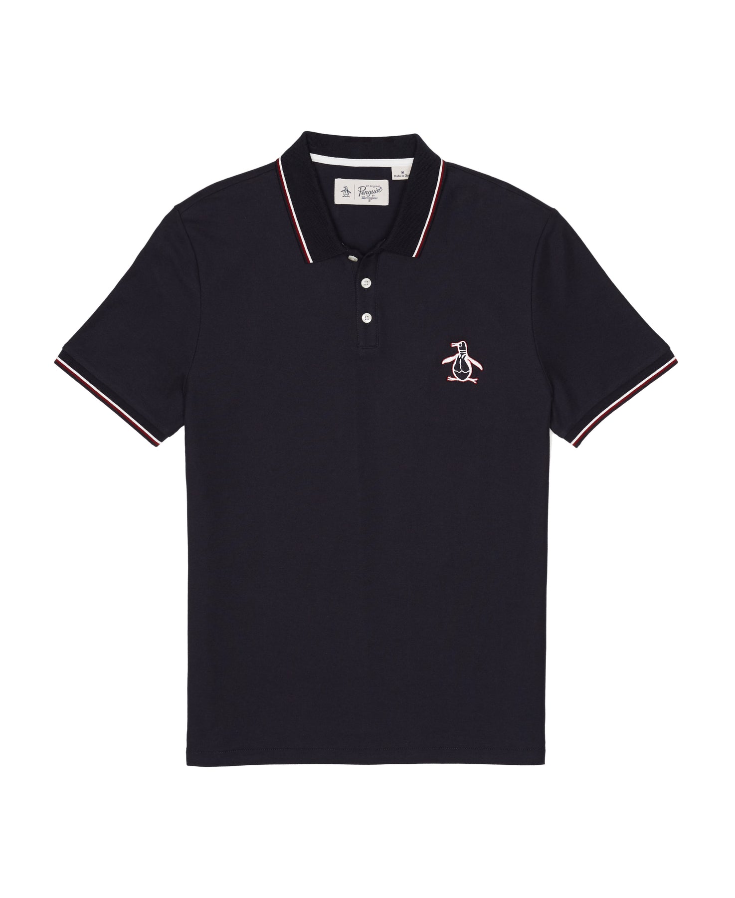 This men's polo from Original Penguin is a timeless addition to your everyday wear. Made for breathability and comfort, the polo is crafted from 100% cotton fabric. The ribbed pique fabric adds a subtle texture while the tipping on the collar adds classic casual style. It's finished with a large Pete logo.