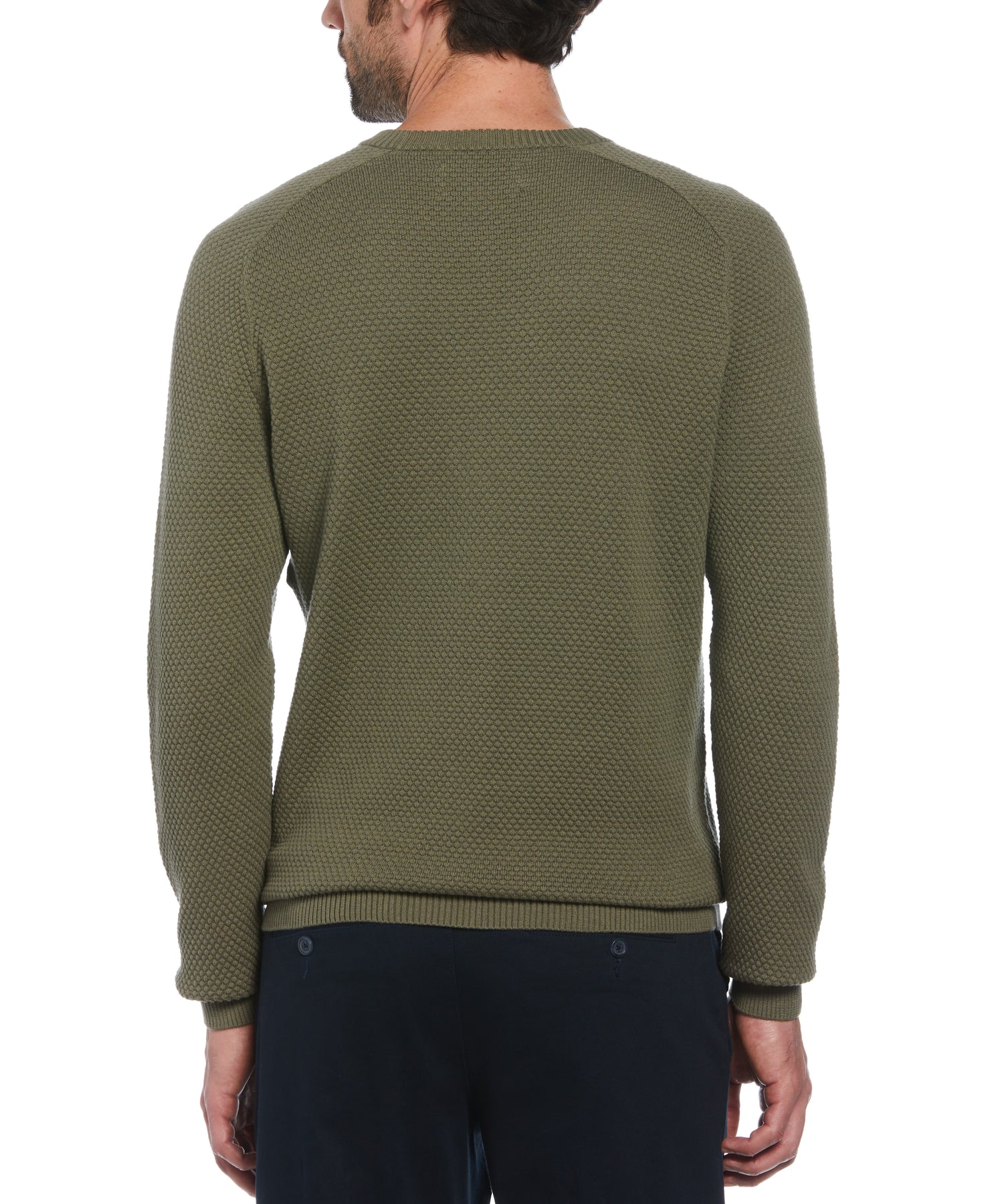 Featuring a classic crew neck design, this casual sweater from Original Penguin will be a versatile addition to your wardrobe. The sweater is crafted from soft, breathable 100% cotton fabric for impressive comfort. Bubble stitching gives the material an eye-catching texture that will look sharp paired with everything from smooth slacks to jeans. Ribbing along the neckline, cuffs and hem and a logo featuring our mascot Pete on the chest complete the sophisticated yet casual look.