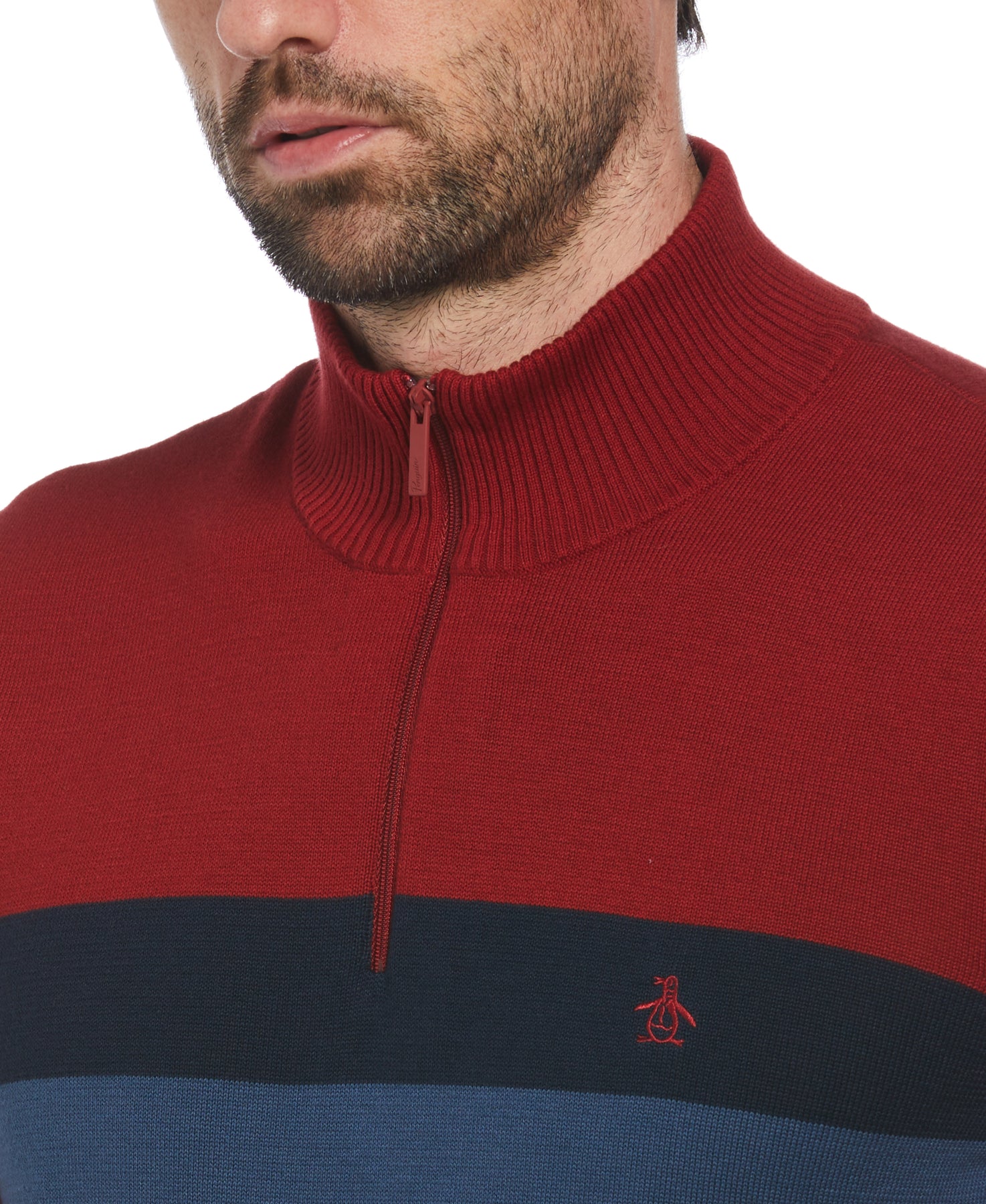 Color Block 1/4 Zip Sweater (Red Dahlia)