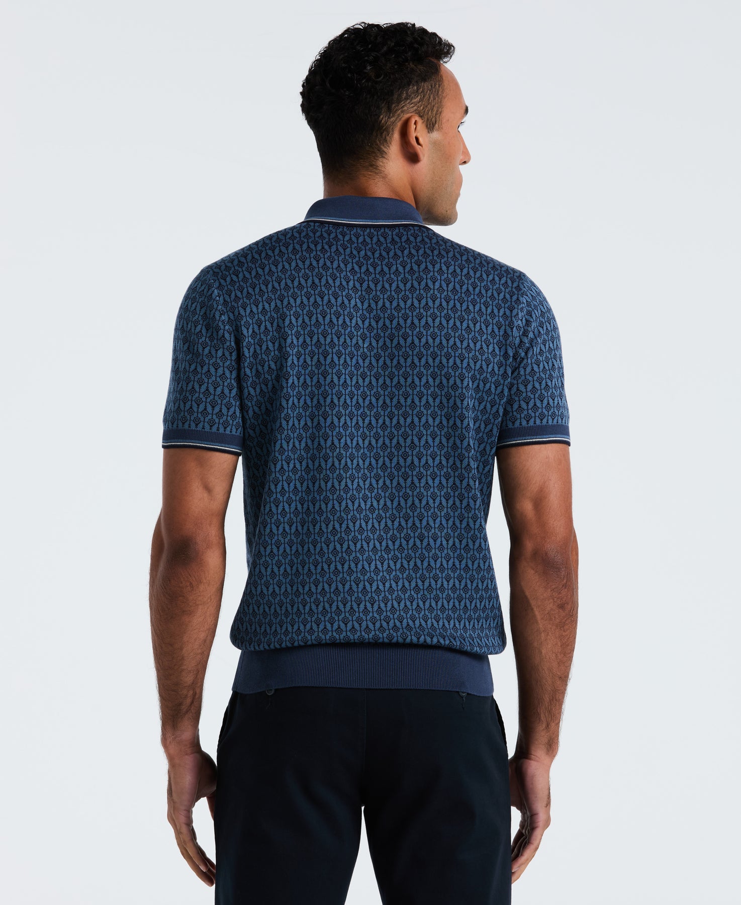 Quarter Zip Geo Jacquard Sweater Polo