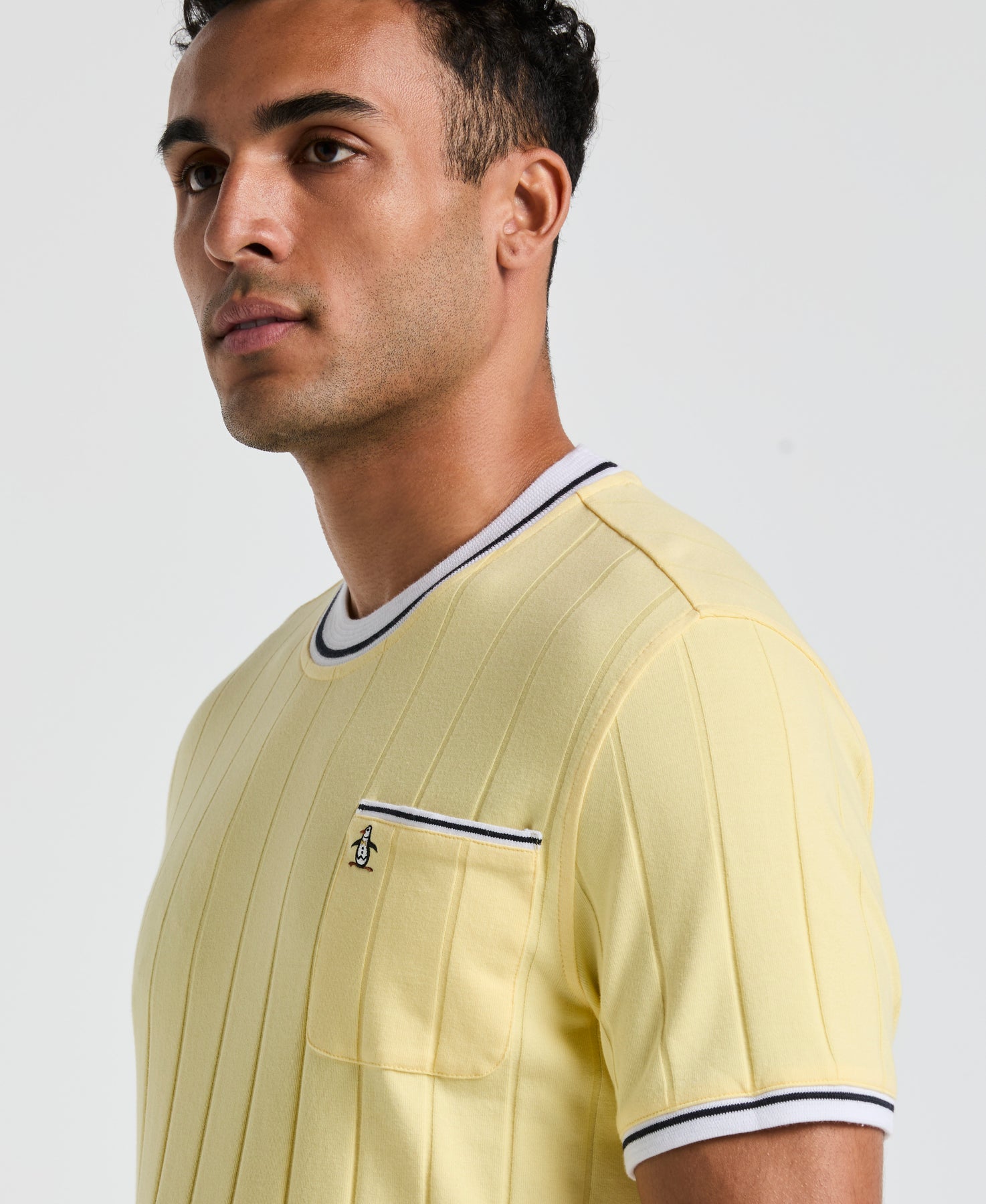 Elevate your everyday style with this unique take on the men's t-shirt from our 70th Anniversary Collection. Crafted from a mix of cotton and stretch for breathability, this tee will keep you cool and comfy when temperatures soar. The Original Penguin tee features a trendy ribbed fabrication and a stylish tipped collar. Perfect for guys who want clothes with character and cool. Pair it with jeans, khakis, joggers, or shorts for a weekend look you can rock anytime, anywhere. Short sleeves make it extra breezy and stylish. The embroidered Pete logo adds an exclusive detail that lets people know where you found this top-tier men's tee.