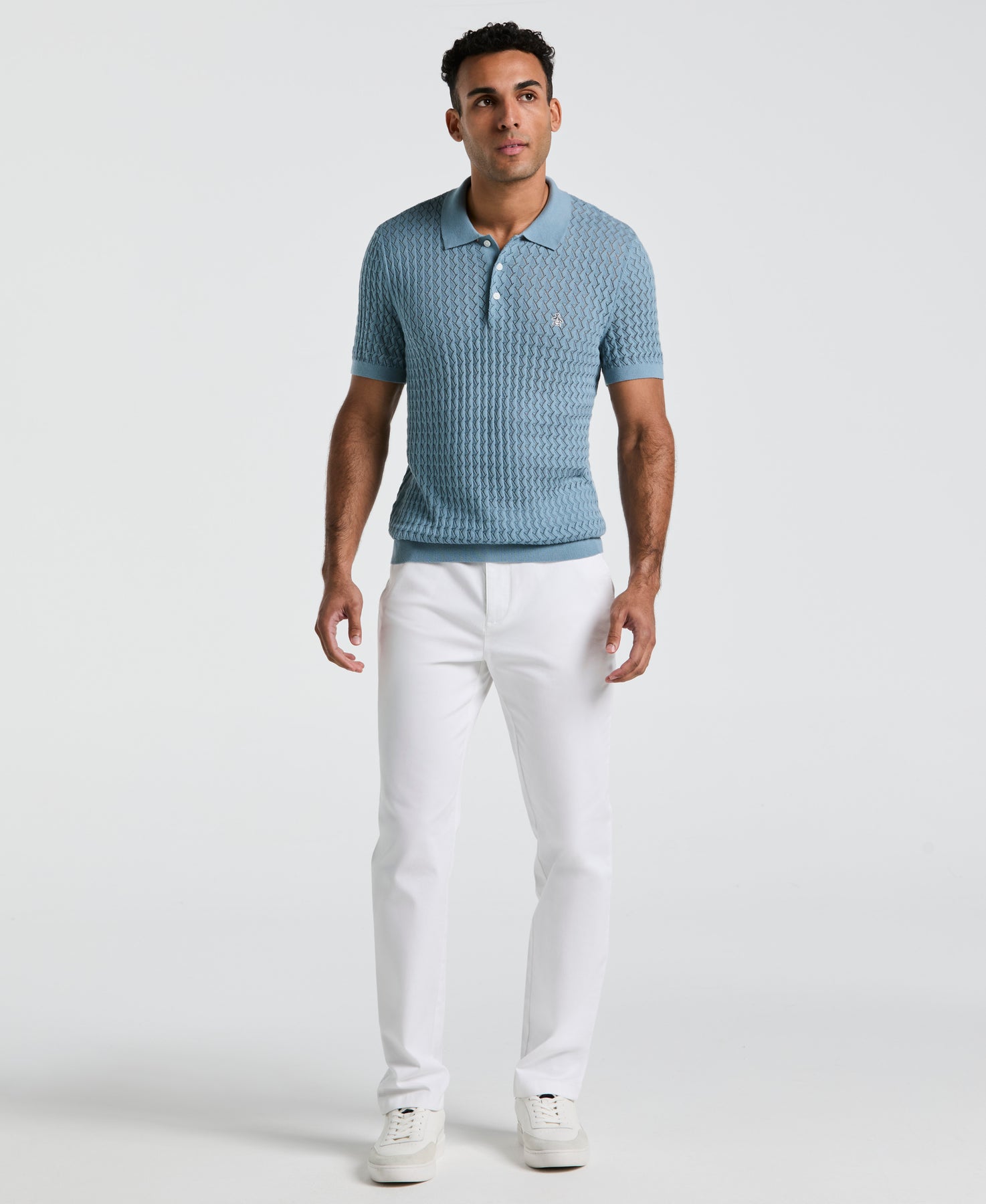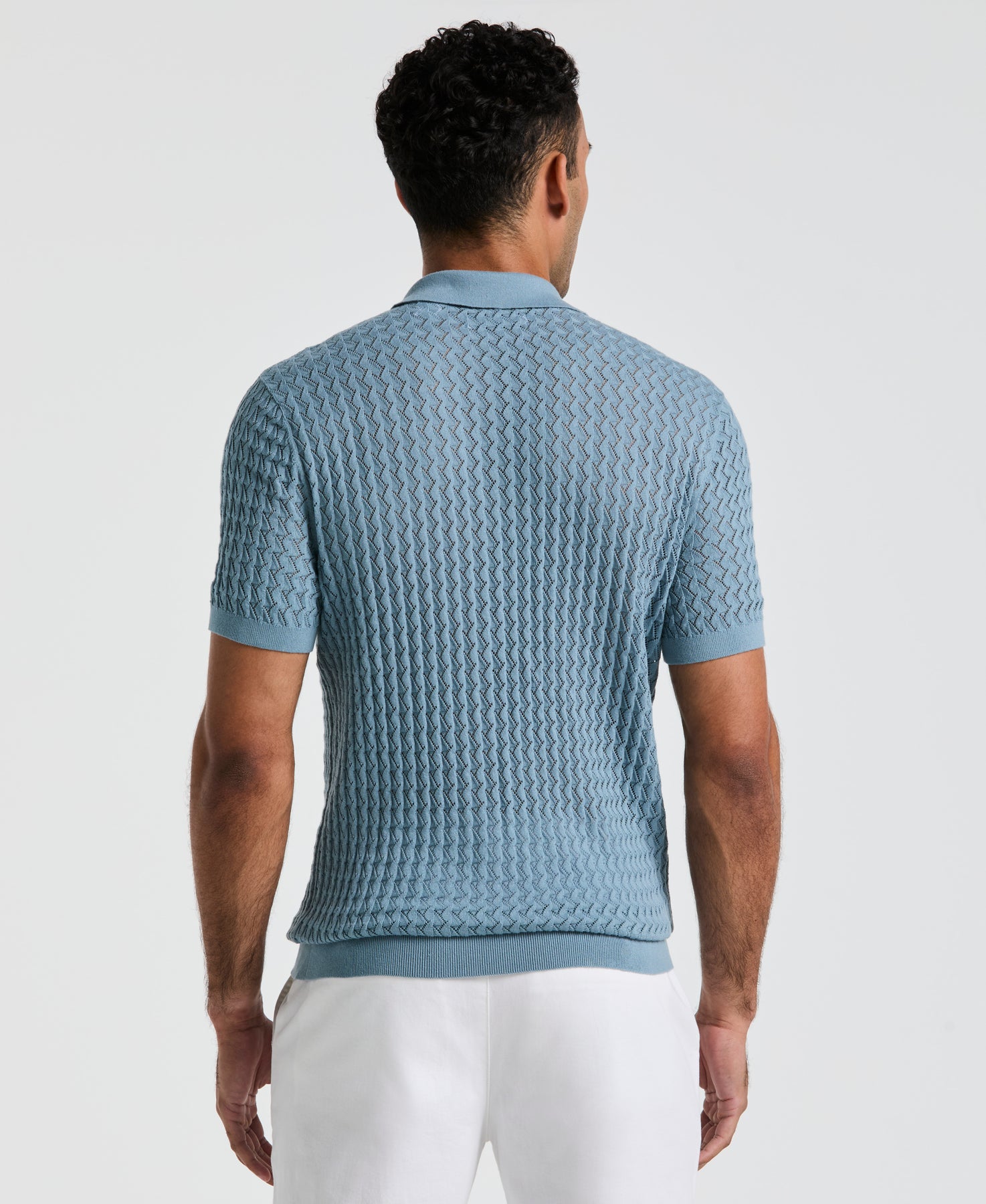 This slim fit sweater polo, made of 100% cotton, features a unique drop needle textured design. With a 3 button placket, ribbed collar, and Pete logo embroidery at the left chest, this polo is sure to elevate your style. Machine washable for easy maintenance.