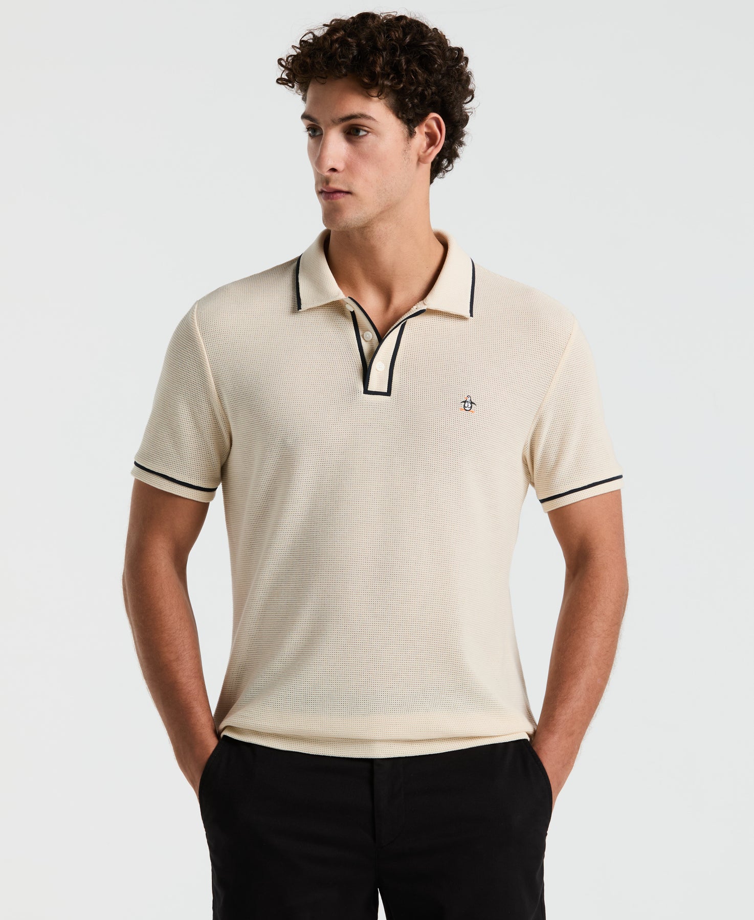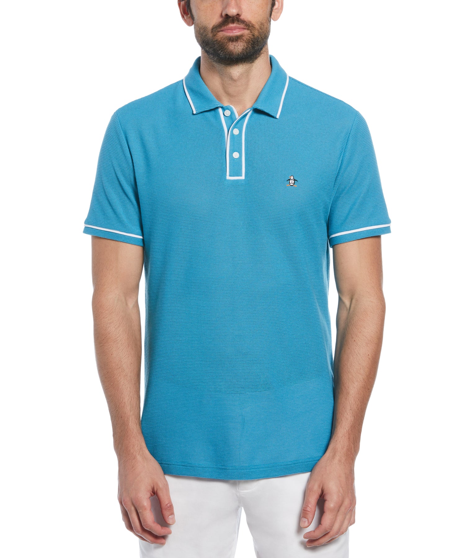 Part of our 70th Anniversary Collection, this Original Penguin's Earl Mesh Polo is a must-have in any man's wardrobe. Made from 100% organic cotton, this short sleeve polo shirt offers a breathable mesh construction and a flattering slim fit. Featuring the iconic TV Pete logo, this shirt exudes casual cool while keeping you feeling fresh, whether you're on the golf course or enjoying a weekend brunch.