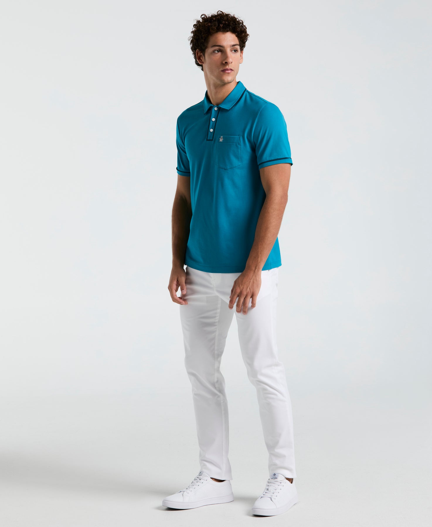 Get a timeless, sophisticated style great for everything from casual Fridays at the office to date night with this men’s polo shirt featuring Original Penguin’s classic Earl design. The versatile design pairs the subtle corded texture of pique fabric with eye-catching contrast-colored tipping on the collar, placket and cuffs. The fabric is made with 34% Tencel™ fibers for enhanced comfort and durability, and a sticker-inspired logo featuring our beloved mascot Pete the penguin gives the design a fun finishing touch.
