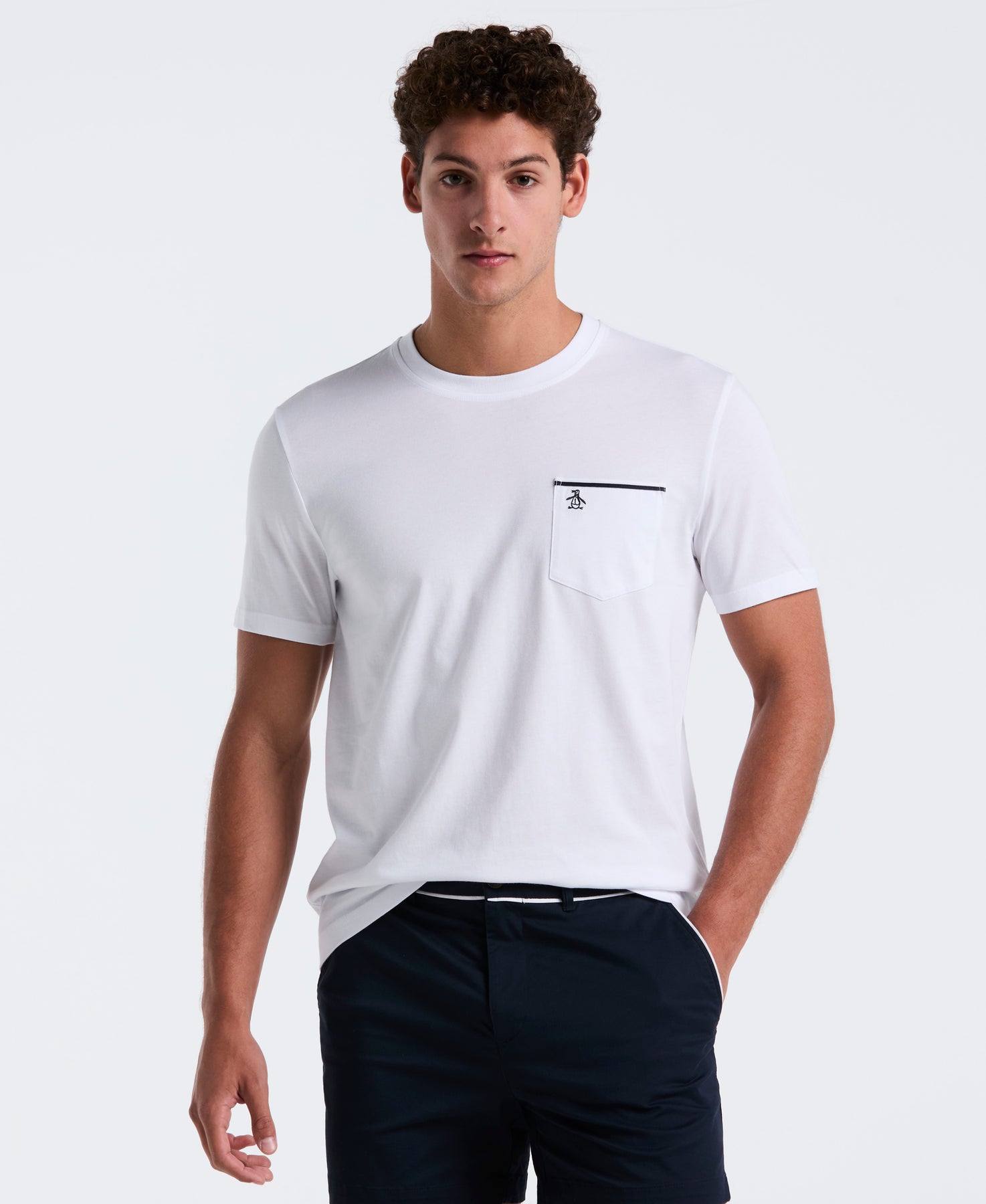 Tackle the day in comfort and effortless casual style with this versatile men’s t-shirt. The cool 100% cotton t-shirt is crafted with a light and breathable jersey knit that’s easy to wear in any season or setting. The chest pocket is tipped with a striped tape inspired by our classic Earl style, adding a subtle twist to the otherwise solid-colored design. Our mascot Pete the penguin also makes an appearance on the pocket in sticker logo form, giving the design his seal of approval.