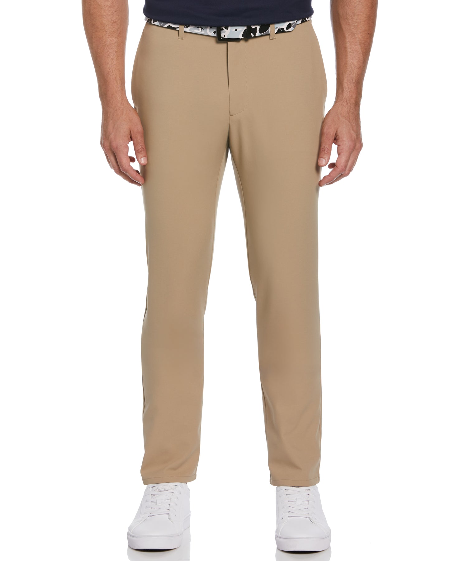 For golf days or any day, you can't beat these Original Penguin flat-front golf pants. Lightweight twill stretch fabric with moisture-wicking technology moves with you as you swing or bend to line up your putt. The flat front and solid color make these pants a versatile addition to any golfer’s wardrobe.