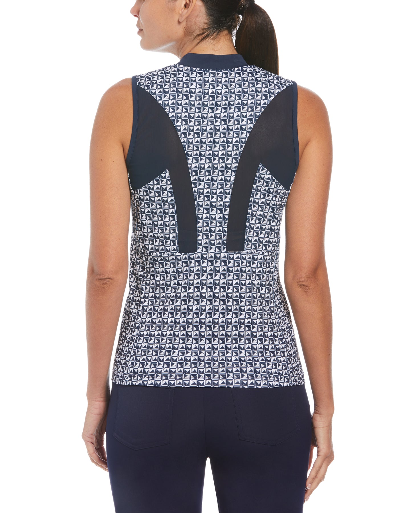 Geometric Print Sleeveless Golf Polo with Mesh Back (Black Iris)