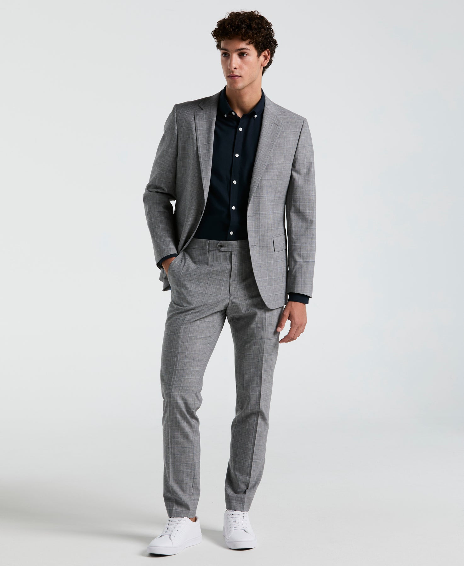 Upgrade your formal wardrobe with our playful, yet professional Navy Plaid Suit Separate Jacket. With a 68% polyester, 28% rayon, and 4% spandex blend, this jacket offers a comfortable fit and allows for easy movement. The two-button front closure and multiple pockets provide both style and functionality. Perfect for any quirky gentleman in need of a new look!