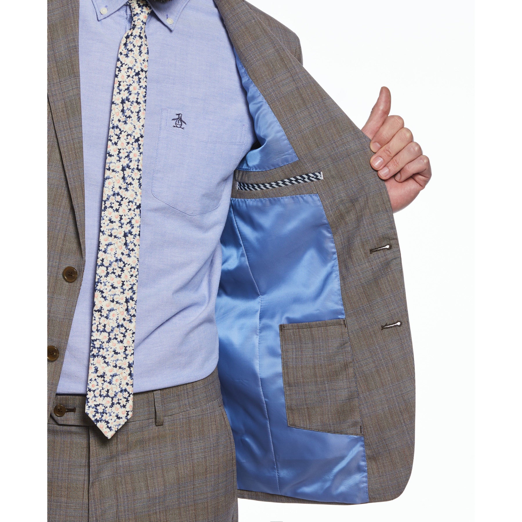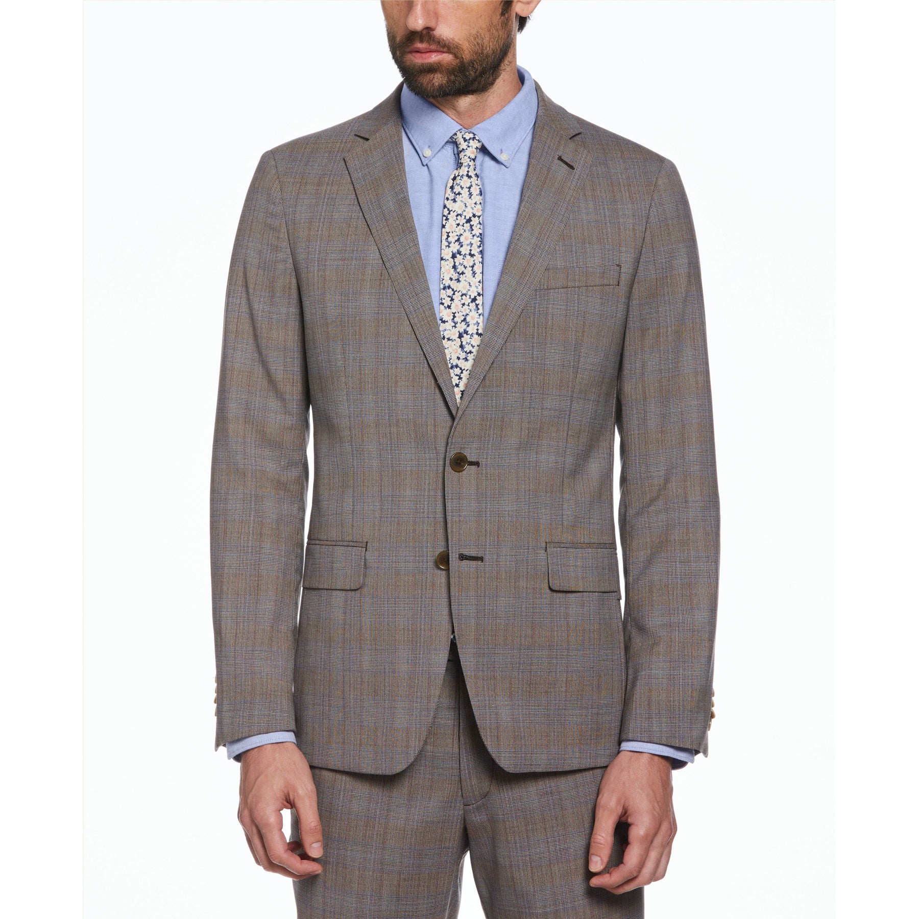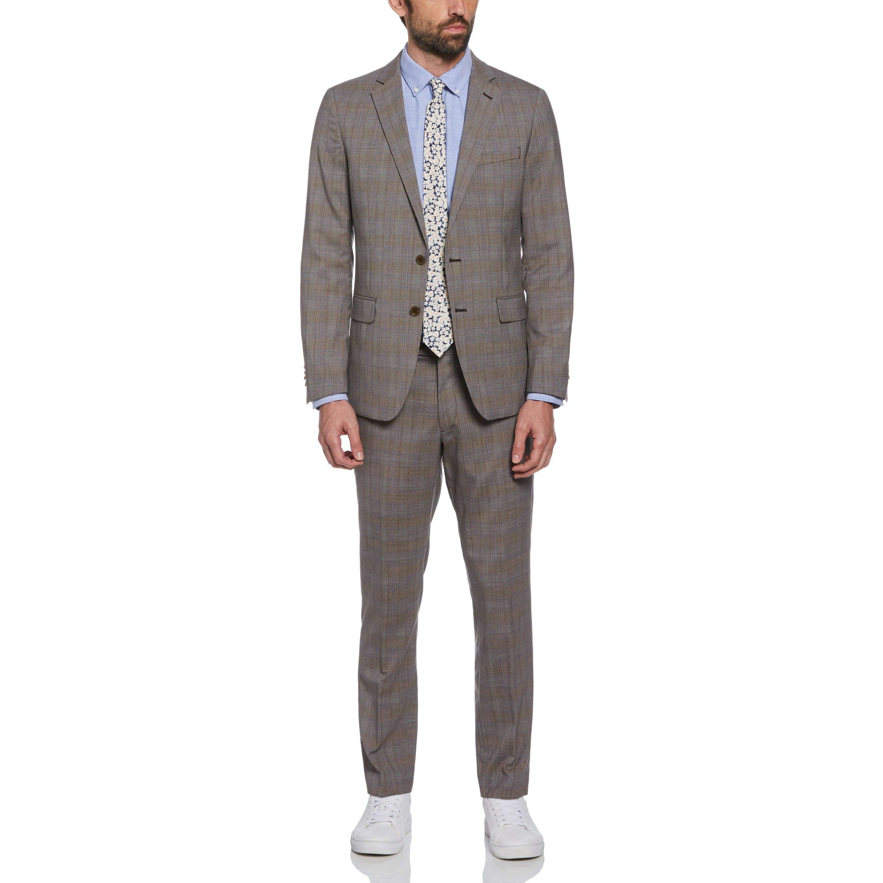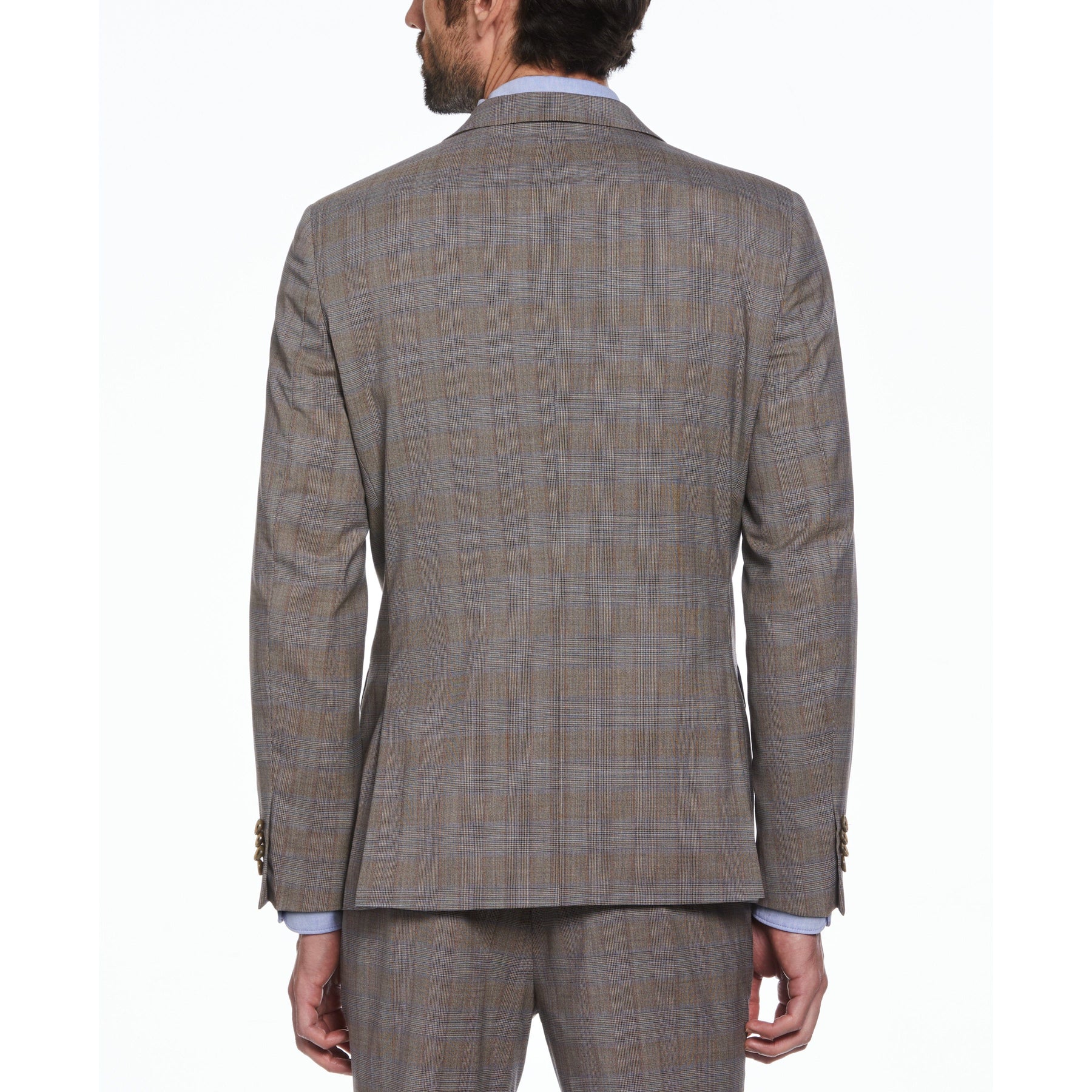 Suit up in style with this Grey Glenn Plaid Wool Blend Suit. Made with a moisture-wicking jersey fabric, it's perfect for staying cool and comfortable. The fully lined interior adds an extra touch of comfort. With a slim fit and four interior pockets, this suit is both functional and fashionable. Ready to make a statement? Grab this suit and go!