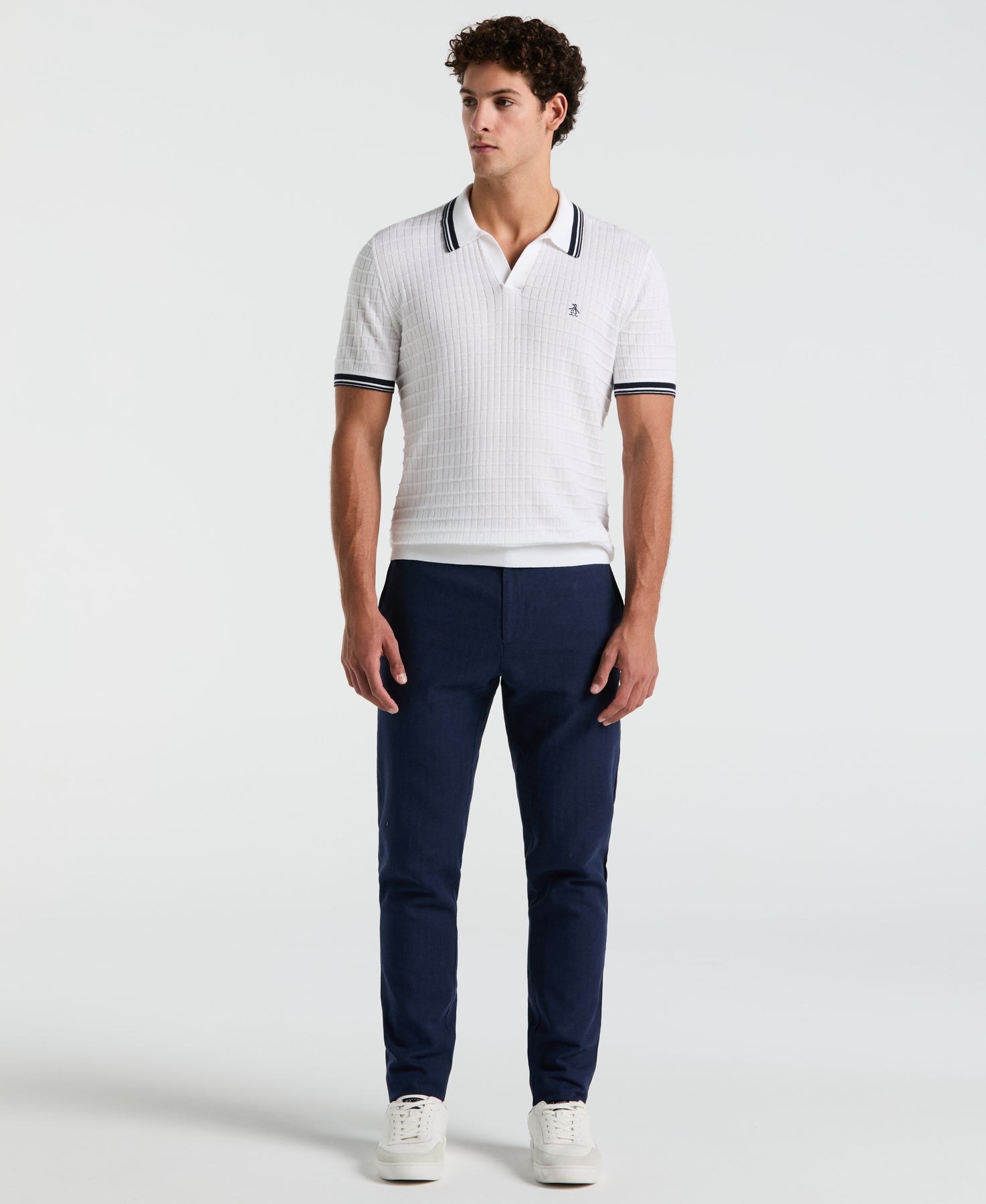 Add a refined touch to your smart casual style with this Original Penguin cotton grid knit Johnny collar sweater polo. This men's lightweight sweater features an intricate and eye-catching grid knit design. With a 12-gauge knit that's soft to the touch, you'll be comfortable yet stylish whether relaxing at home or attending your next social gathering.