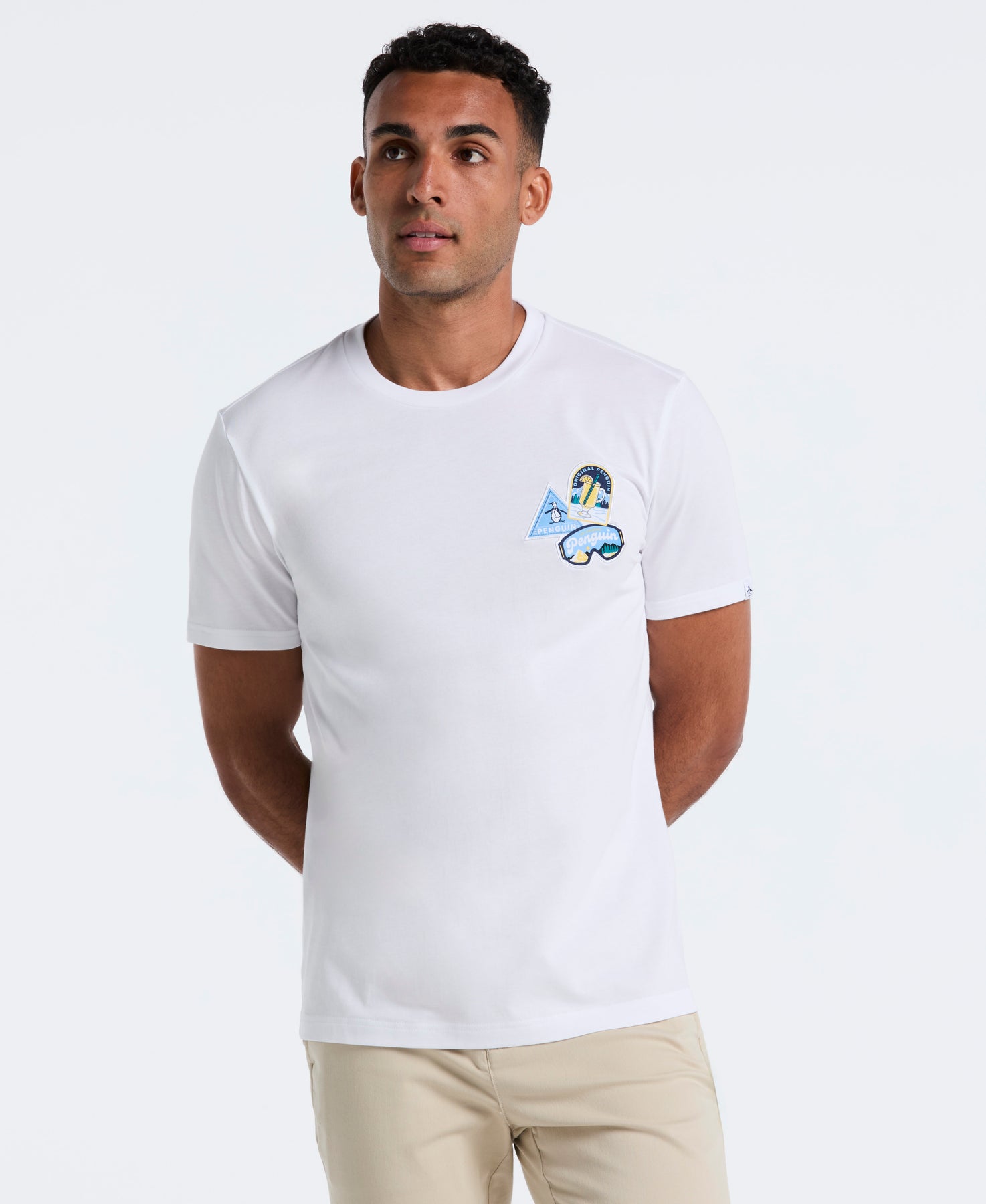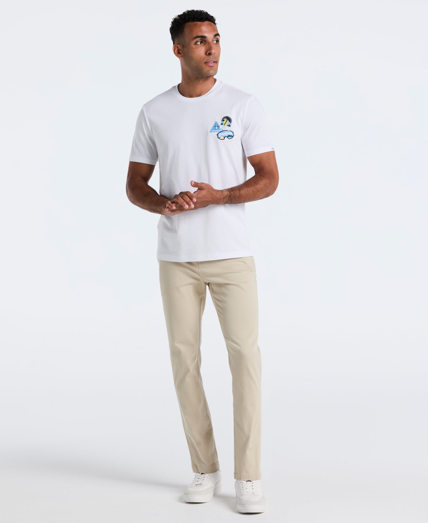 This Original Penguin short-sleeve tee adds a bit of character to your casual style. This slim-fit tee is made from soft jersey fabric for all-day comfort and breathability. It features a ribbed crew neck, short sleeves and straight hem. The Hot Toddy patch adds a stylish focal point.