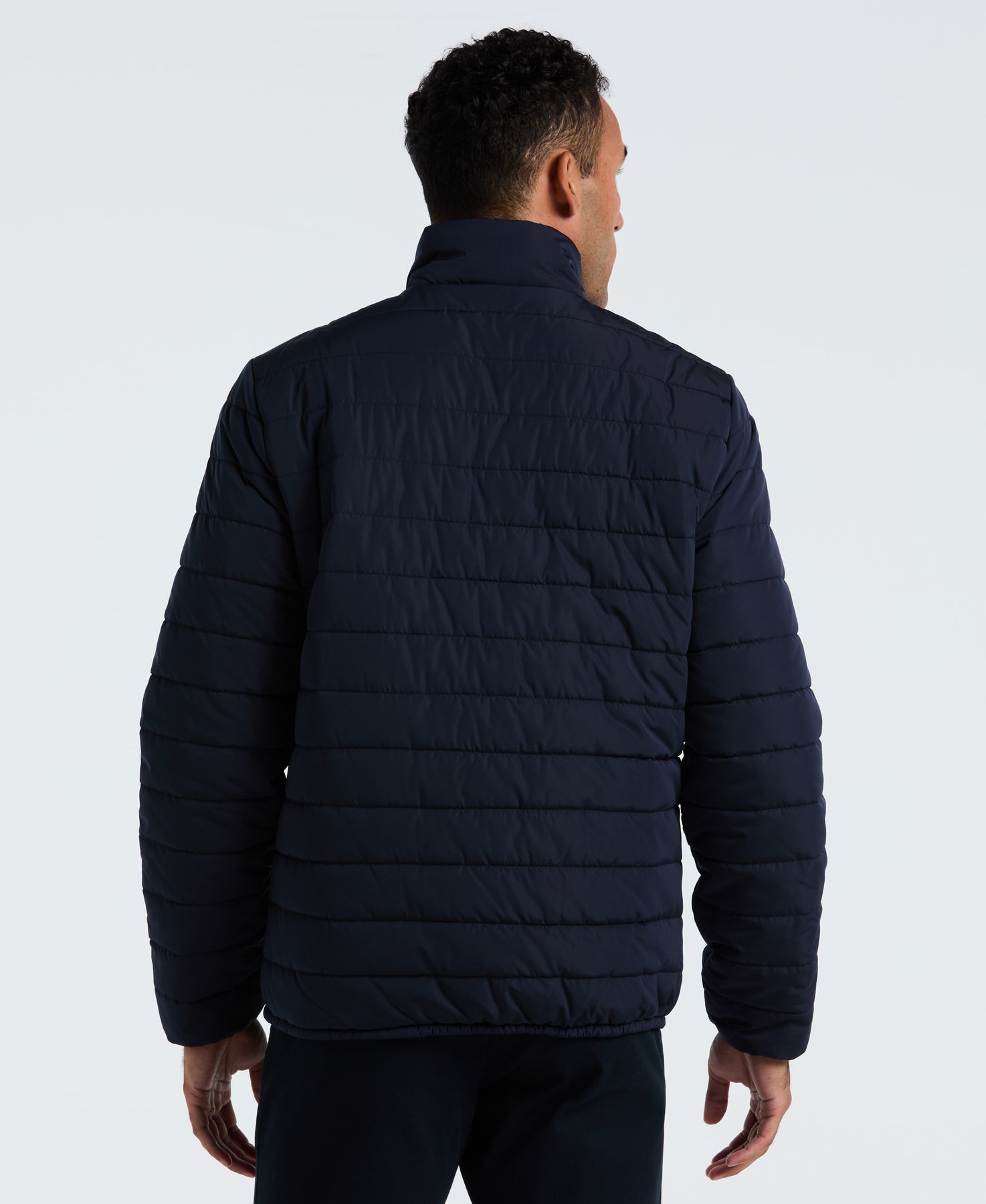 Stay comfortable, rain or shine, in this men's lightweight puffer jacket from Original Penguin. The durable plain weave fabrication is water-resistant, keeping you dry and comfy when the weather turns. The high-density surface helps to shield you from the elements. It has a practical full-zip closure with a sporty mock neck.
