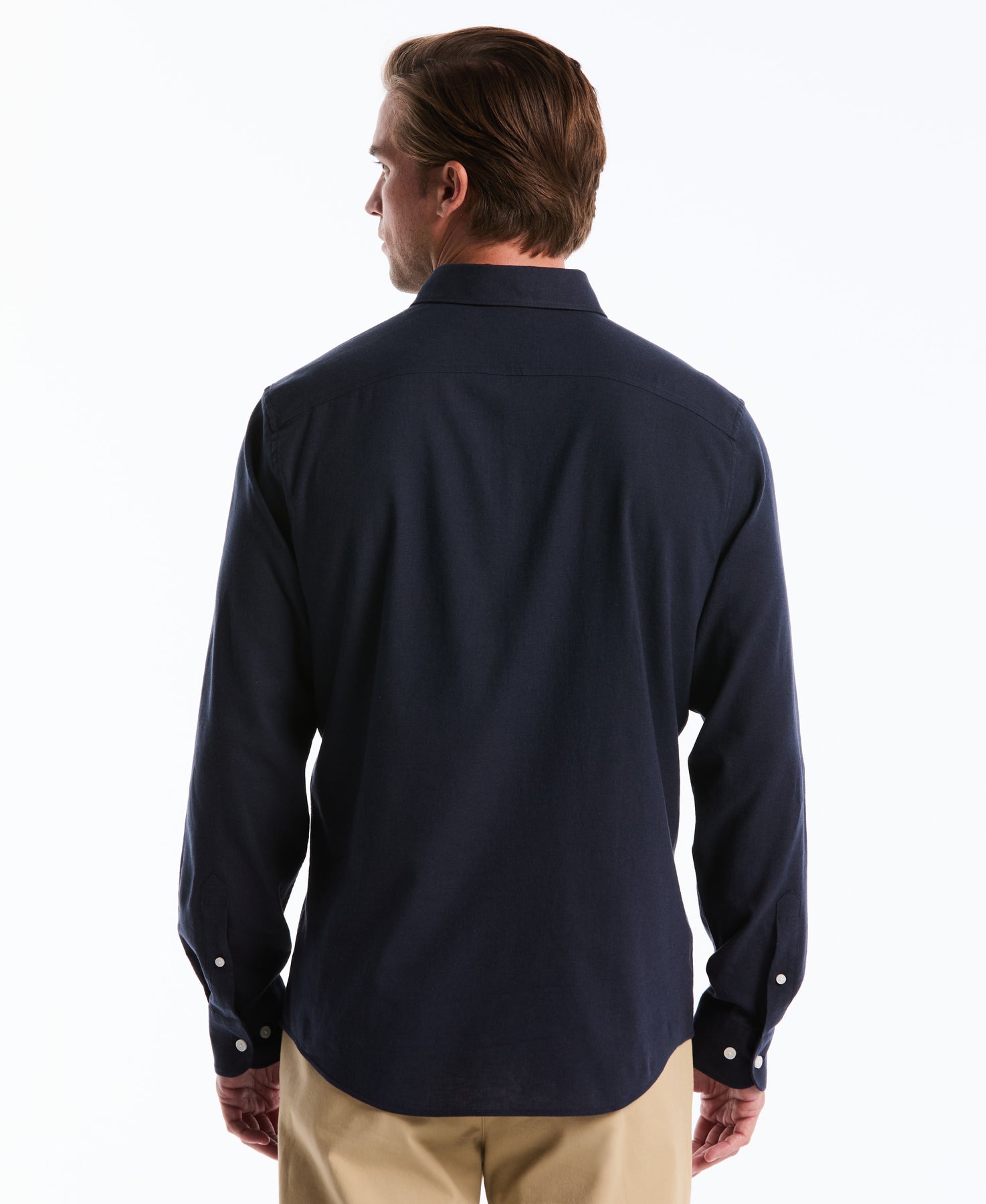 This Original Penguin linen-blend long sleeve shirt is the ultimate choice for both easy style and all-day comfort. With its slim fit design, button-down collar and durable plain weave fabric, this men's button-down shirt is the ideal choice for any occasion. The stretch fabric ensures maximum comfort and ease of movement while the timeless solid color design is easy to pair with a range of bottoms, making it a must-have essential for any wardrobe.