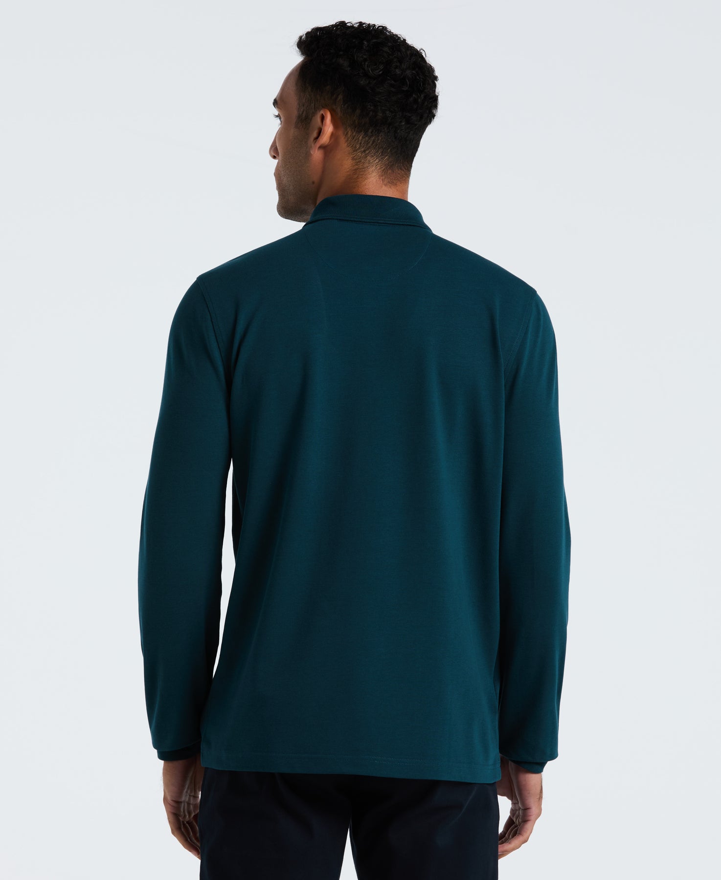 Take your polo style to new lengths with this long sleeve men’s polo from Original Penguin. The versatile solid color pairs easily with a wide range of bottoms, and the ribbed polo collar with two-button placket provides a timeless polo look. It’s crafted with pique fabrication, which weaves raised cords into the surface of the material for subtle texture to ensure this slim-fit shirt feels as good as it looks.