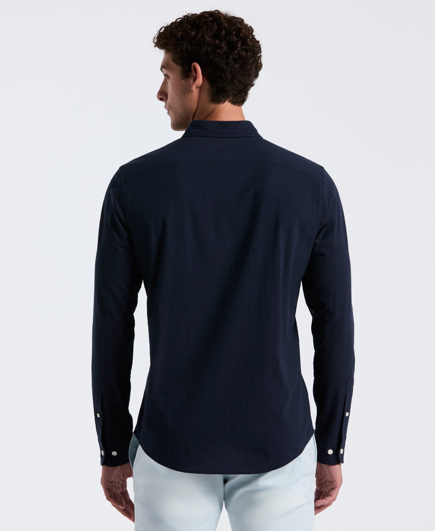 Long Sleeve Seersucker Stretch Solid Shirt (Dark Sapphire)