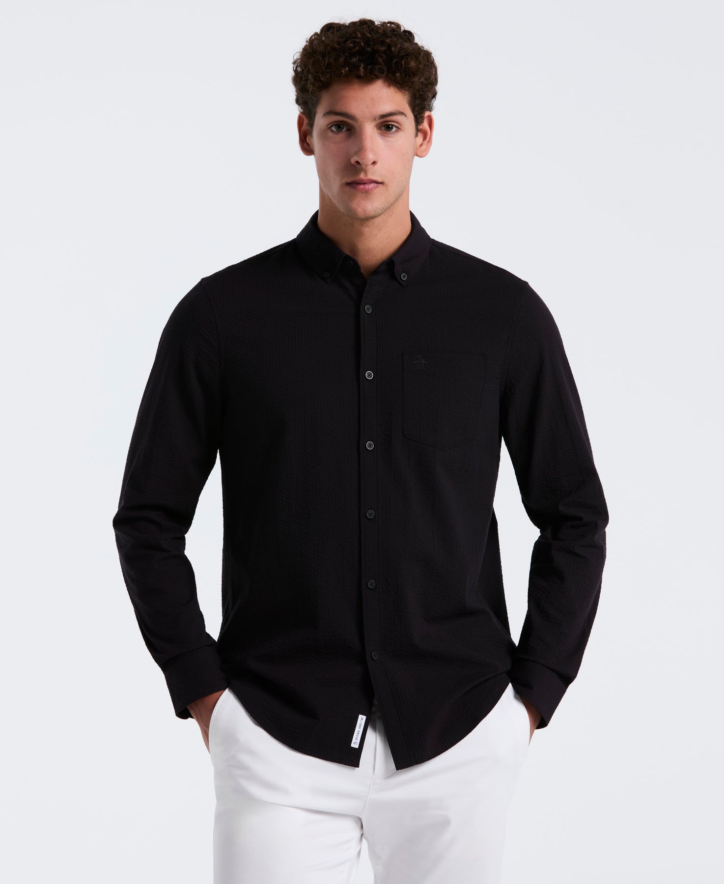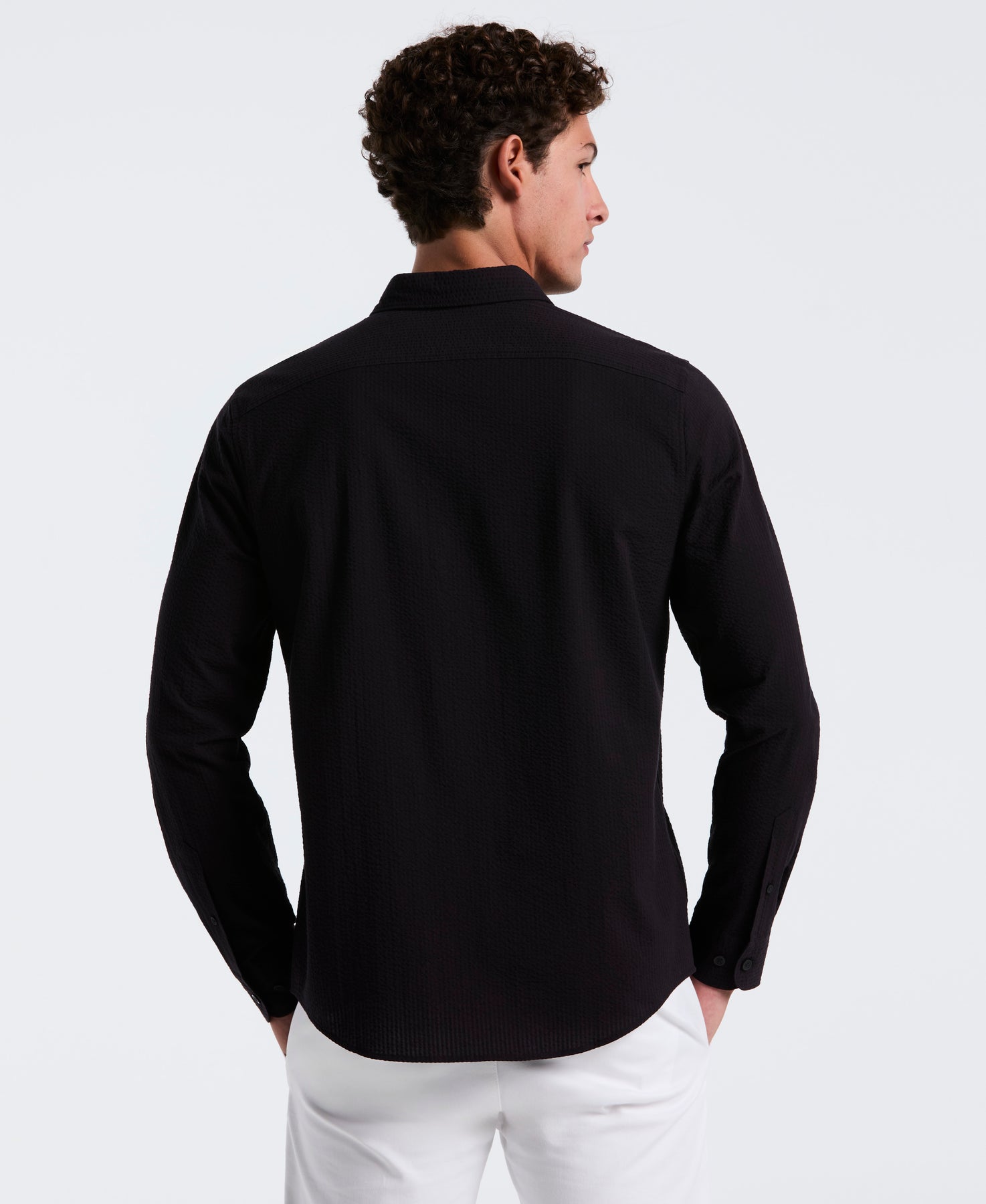 Long Sleeve Seersucker Stretch Solid Shirt (True Black)