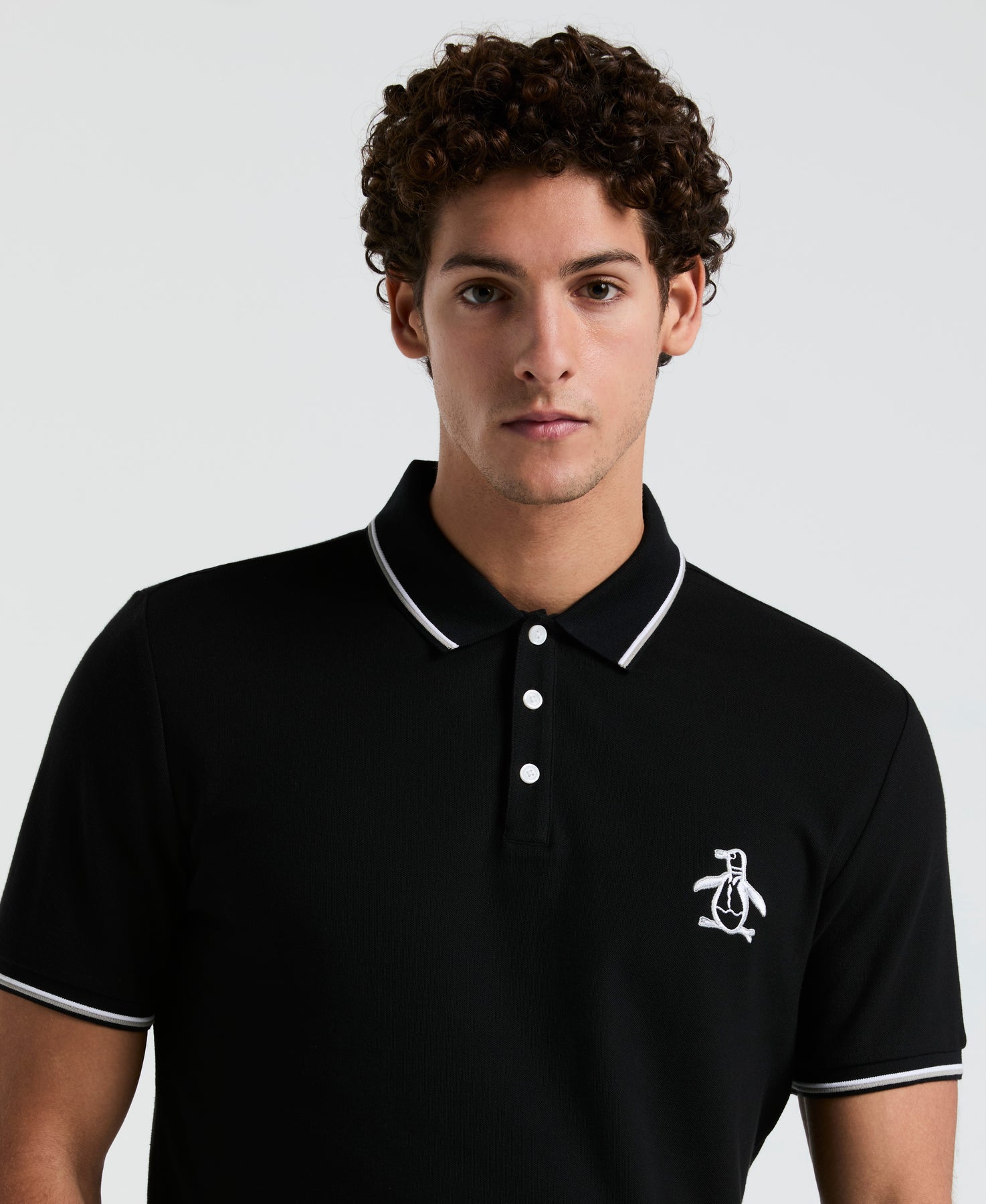 This men's polo from Original Penguin is a timeless addition to your everyday wear. Made for breathability and comfort, the polo is crafted from 100% cotton fabric. The ribbed pique fabric adds a subtle texture while the tipping on the collar adds classic casual style. It's finished with a large Pete logo.