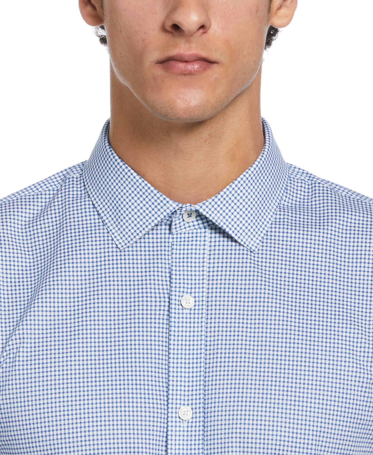 Unleash your inner micro-manager with this slim-fit dress shirt. Made from a 60-40 blend of cotton and polyester, its jersey fabrication is sure to keep you comfortable all day long. With a point collar and micro check print, you'll be the sharpest dresser in the office.