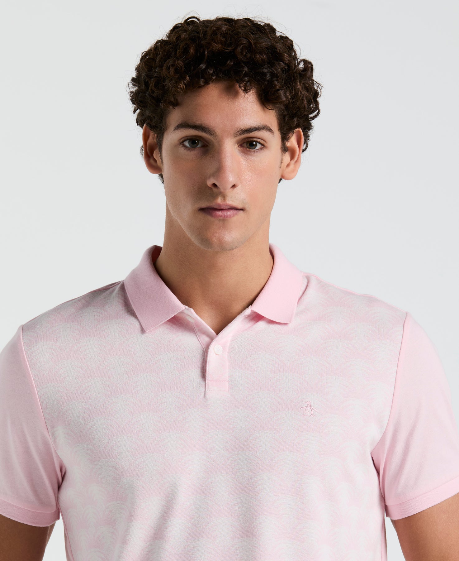 With its textured geometric-style palm print, this men's polo from Original Penguin offers a unique, avant-garde look. Designed for easy wear as much as eye-catching style, this polo shirt for men is crafted from jacquard cotton fabric for comfort and a sophisticated touch. This polo top has a slim fit for a seamless look.