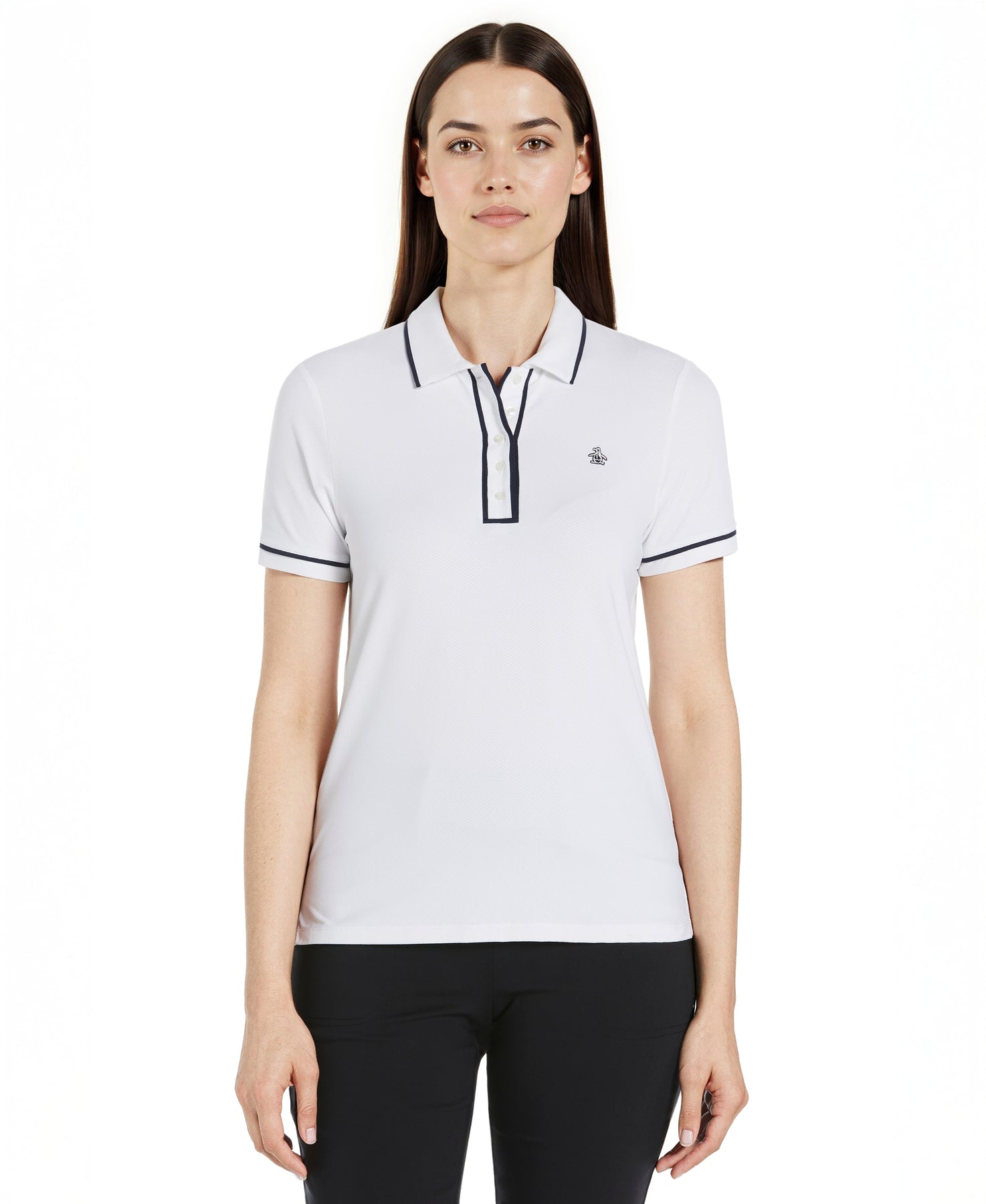For an elevated look on the golf course, choose this women's golf polo shirt from Original Penguin. This golf top is made from pique fabric that features a subtle texture with contrast color piping to give your golf wear a stylish and refined touch. Built for comfort on the course as well, this golf shirt is finished with stretch for a full range of motion.