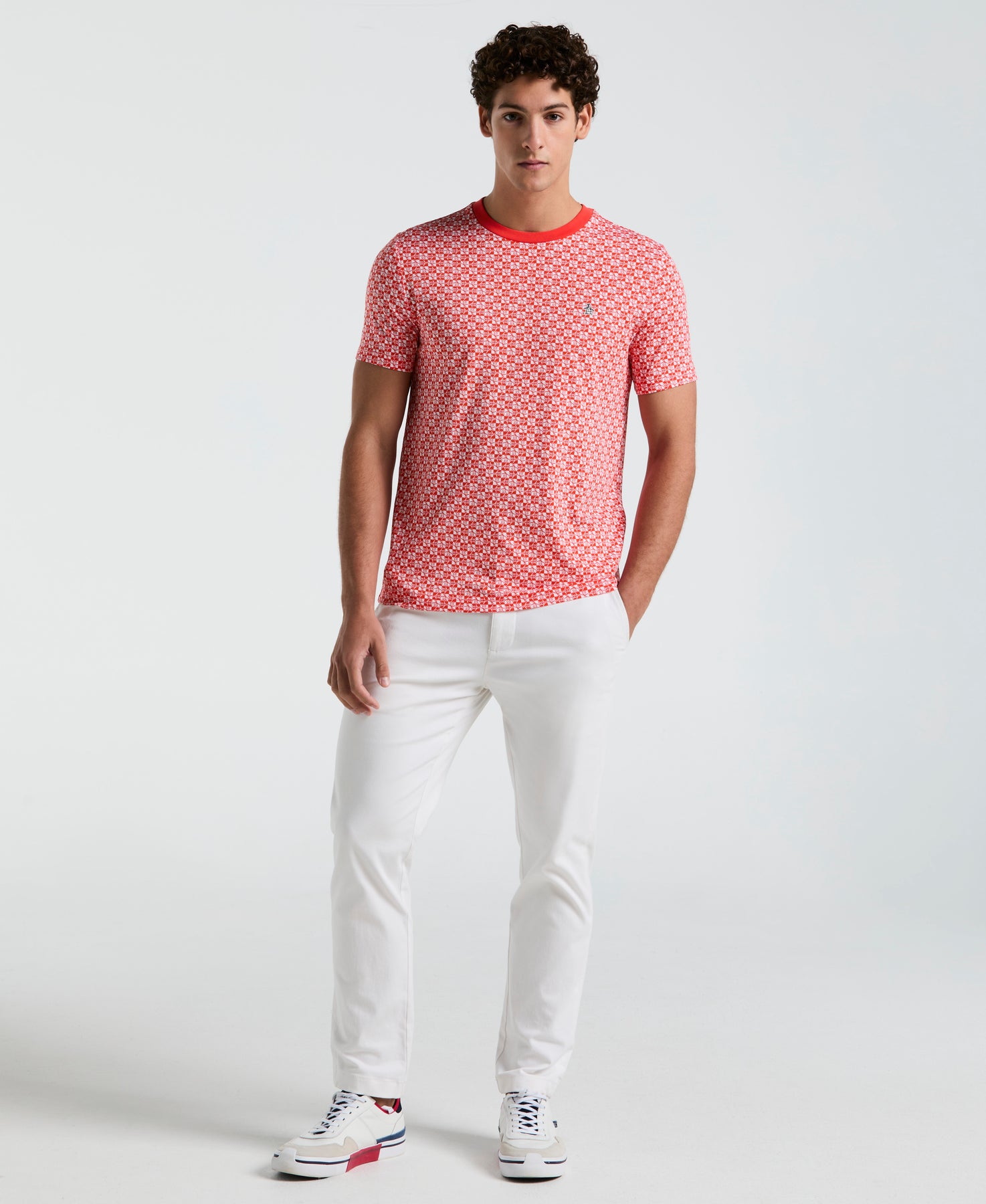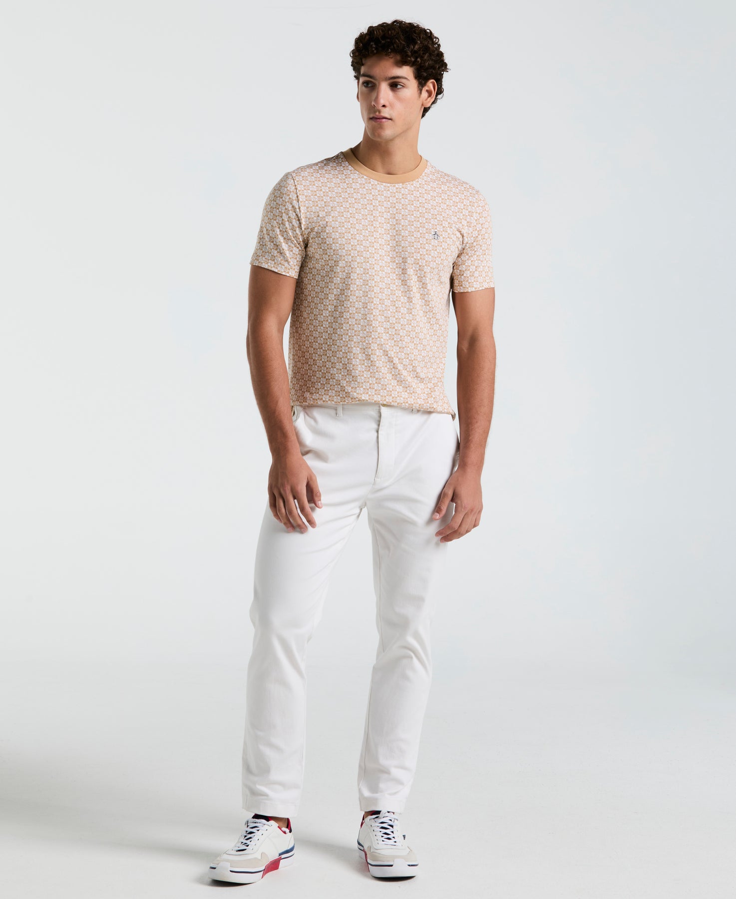This Original Penguin men's t-shirt is a cool, contemporary wardrobe essential. Designed with a slim fit for a sleek silhouette, it’s covered with a lively check print featuring our beloved mascot Pete the penguin turning around in every direction. Made from soft and breathable cotton jersey, this practical t-shirt is designed for all-day comfort. It’s finished with a contrasting solid-colored crew neck and a sticker Pete logo on the chest that adds a charming accent.