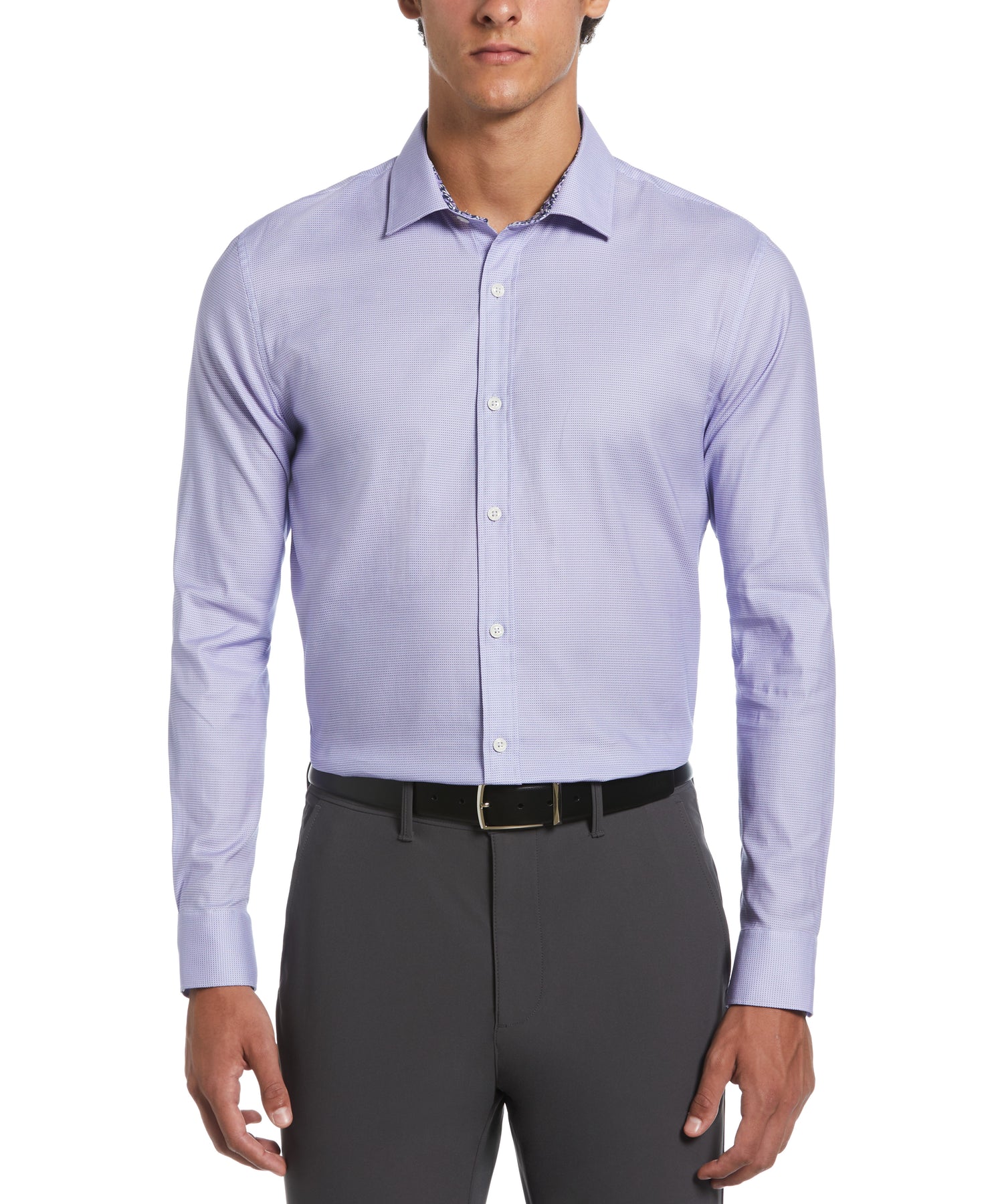 This textured print cotton shirt is perfect for the stylish guy. The slim fit men's printed shirt sits close to the body and highlights your physique while keeping things streamlined. This men’s long sleeve shirt has a spread collar and handsome textured print throughout. It can easily be worn casually with some dark wash denim or dressed up with trousers.