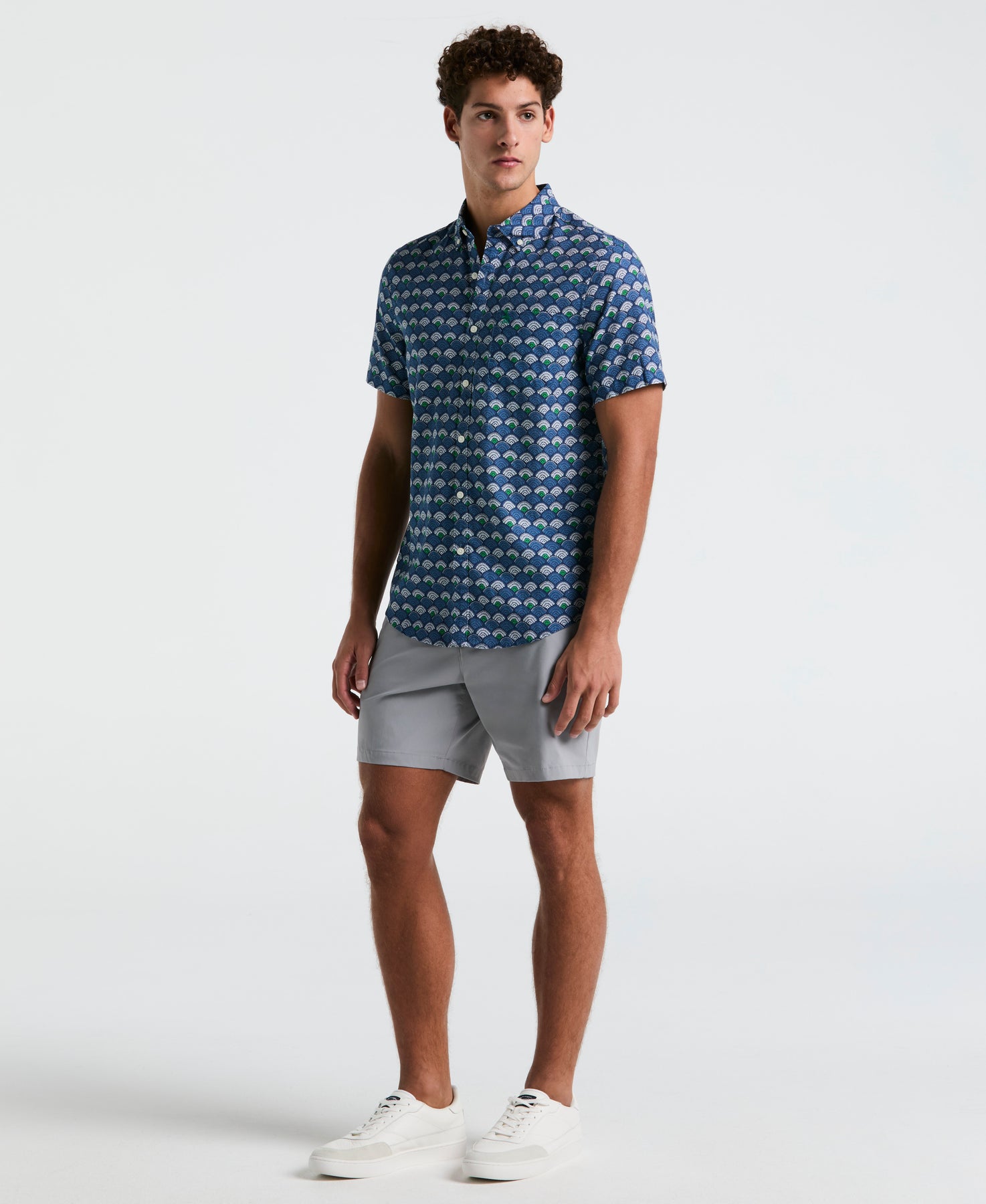 Introducing our Linen Blend Multiscallop Shirt: The perfect blend (get it?) of style and durability. Made with a 55% linen and 45% cotton blend, this slim fit button down features a unique weave for extra toughness. Perfect for any occasion, and easy to care for with a simple machine wash.