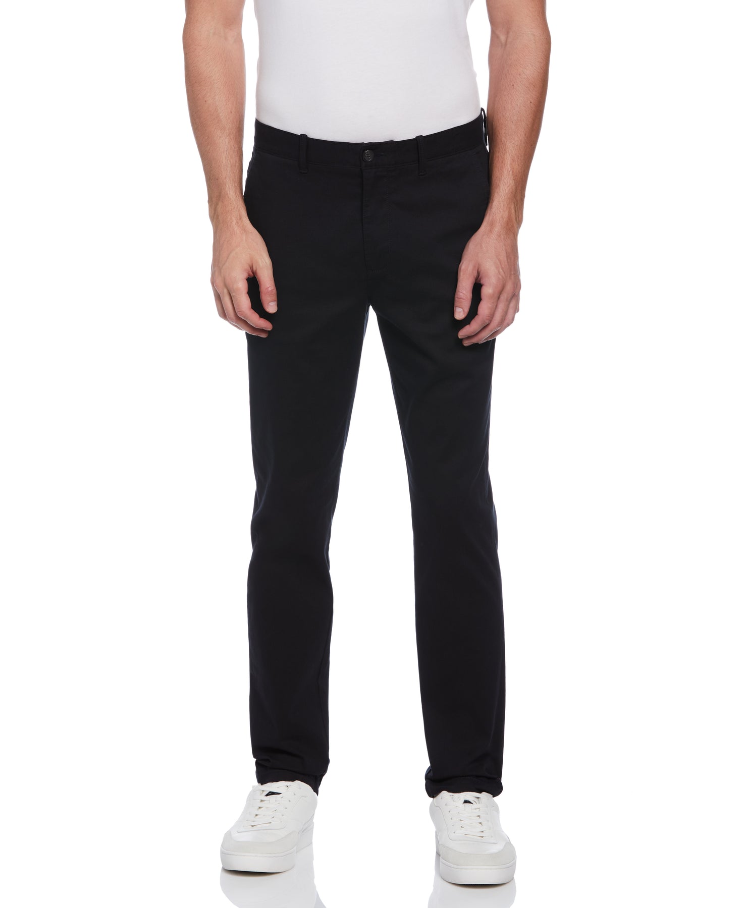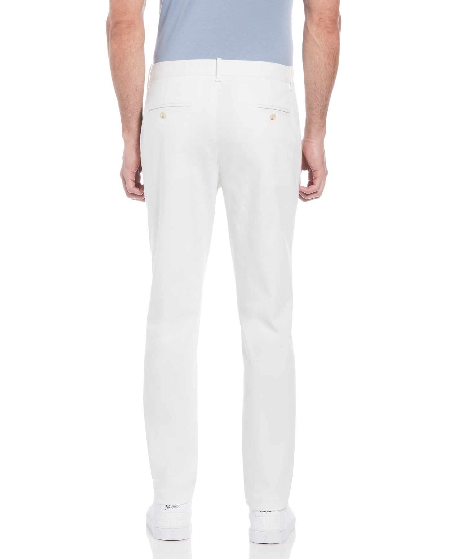 You can’t go wrong with the versatile casual style of these Original Penguin chinos for men. They’re made from a lightweight twill fabric with added stretch, making them a comfortable choice for day or night. The slim fit and flat-front design create a clean, contemporary silhouette you can wear anywhere.