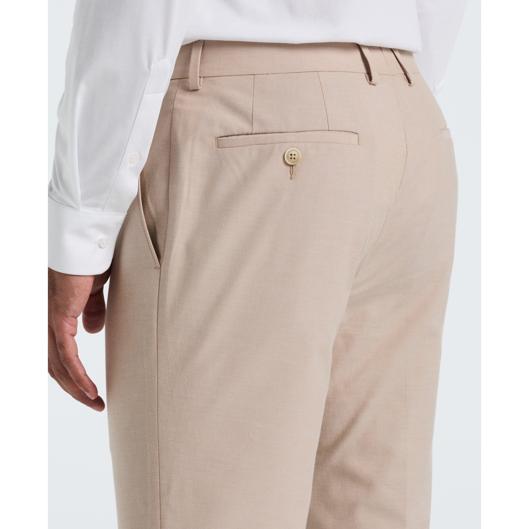 Step out in style with this Solid Tan Suit, crafted from a comfy blend of 97% cotton and 3% elastane for just the right stretch. The slim-fit jacket features a sharp two-button front, a sleek welt chest pocket, and two angled flap pockets—perfect for stashing your essentials or striking a pose. Matching slim-fit pants with a tapered leg complete the look, making you ready to turn heads at any occasion. Who said suits can't be fun?