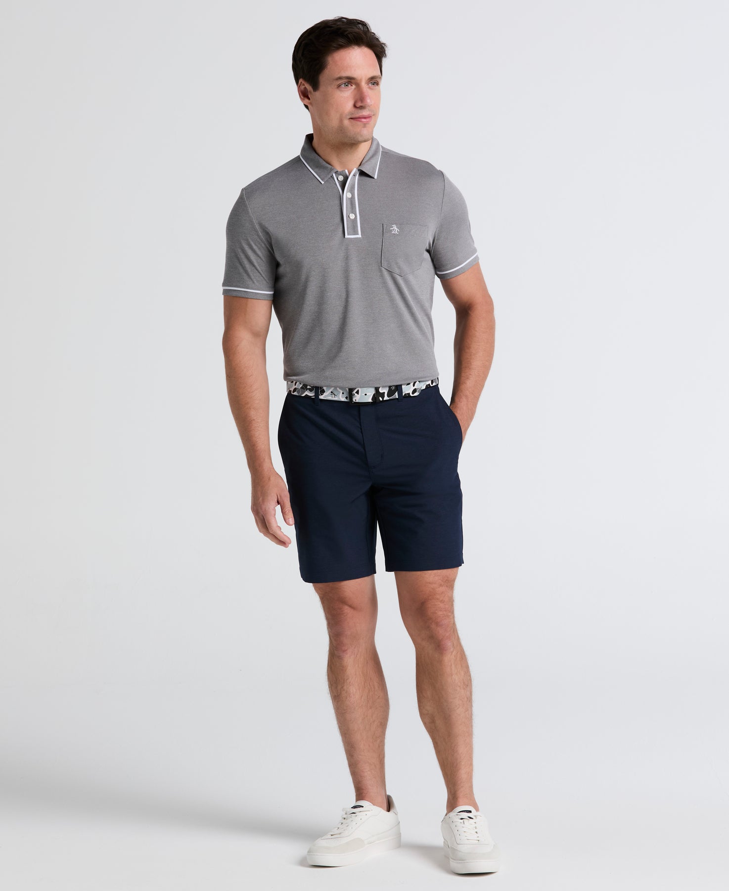 Upgrade your golf essentials with these Original Penguin men's golf shorts made with performance in mind. Plain weave fabrication delivers enhanced durability, while added stretch provides a comfortable fit. Moisture-wicking properties keep you feeling dry as your game heats up. These 8" technical golf shorts will be your new favorite pair for on the course and off.