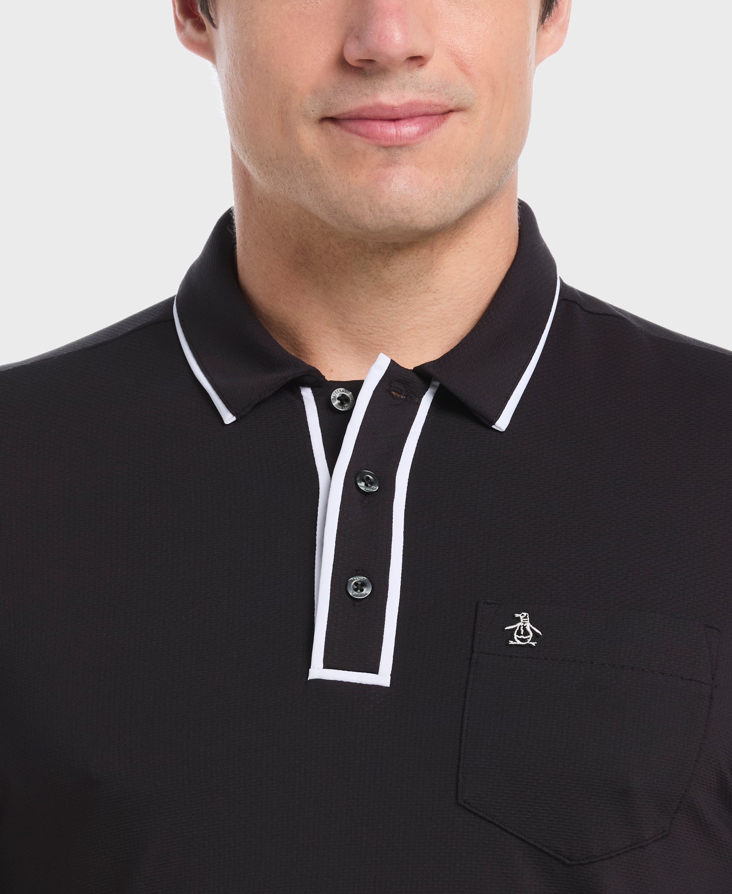 Get enhanced comfort and style on the green with this men's golf polo shirt from Original Penguin. Designed with pique fabric, this golf shirt features raised cords woven into the material for texture and a refined touch. The Earl styling adds a classic look while the added stretch offers an all-around comfortable fit and feel you'll enjoy during or after the game.