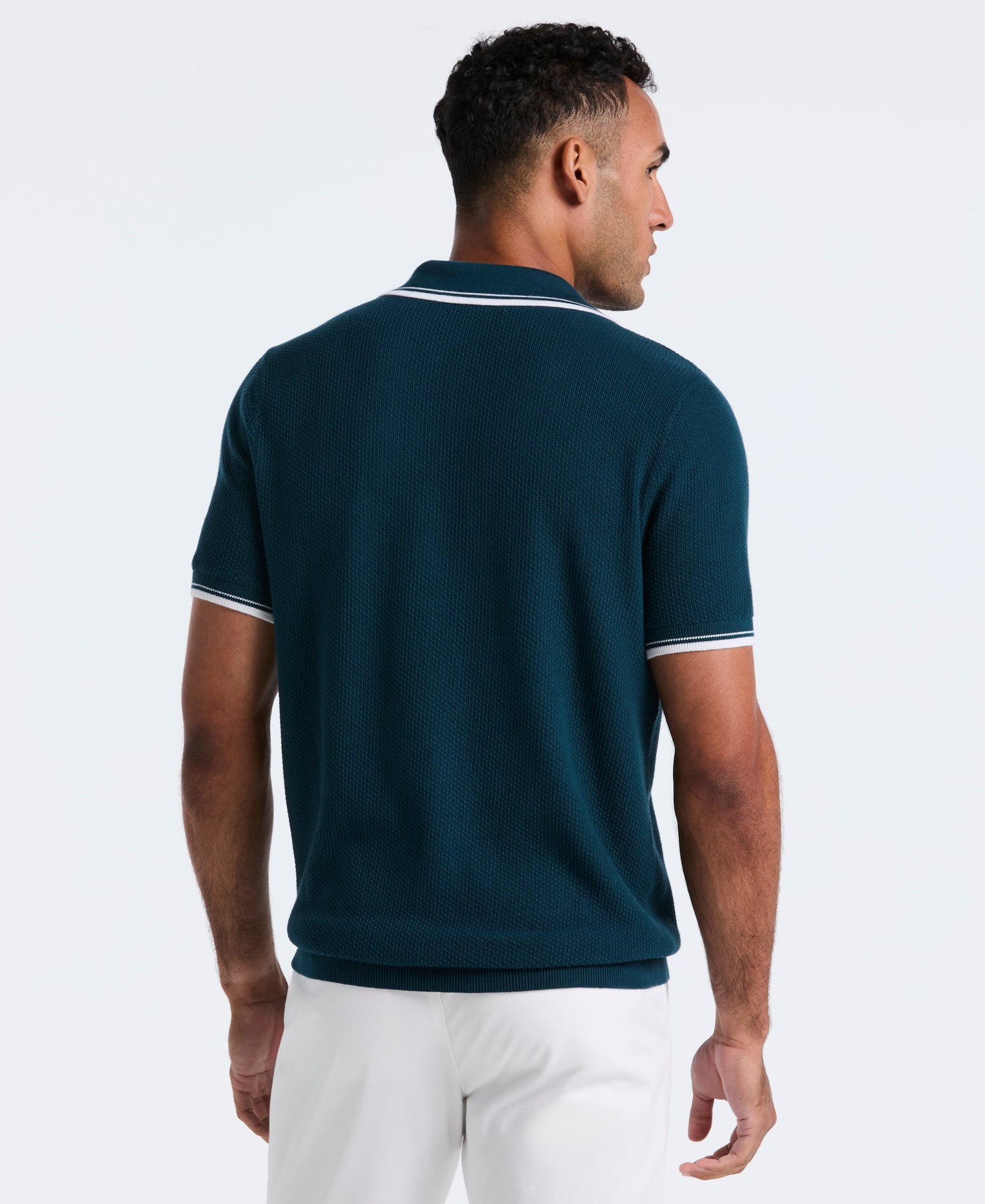 Textured Johnny Collar Sweater Polo