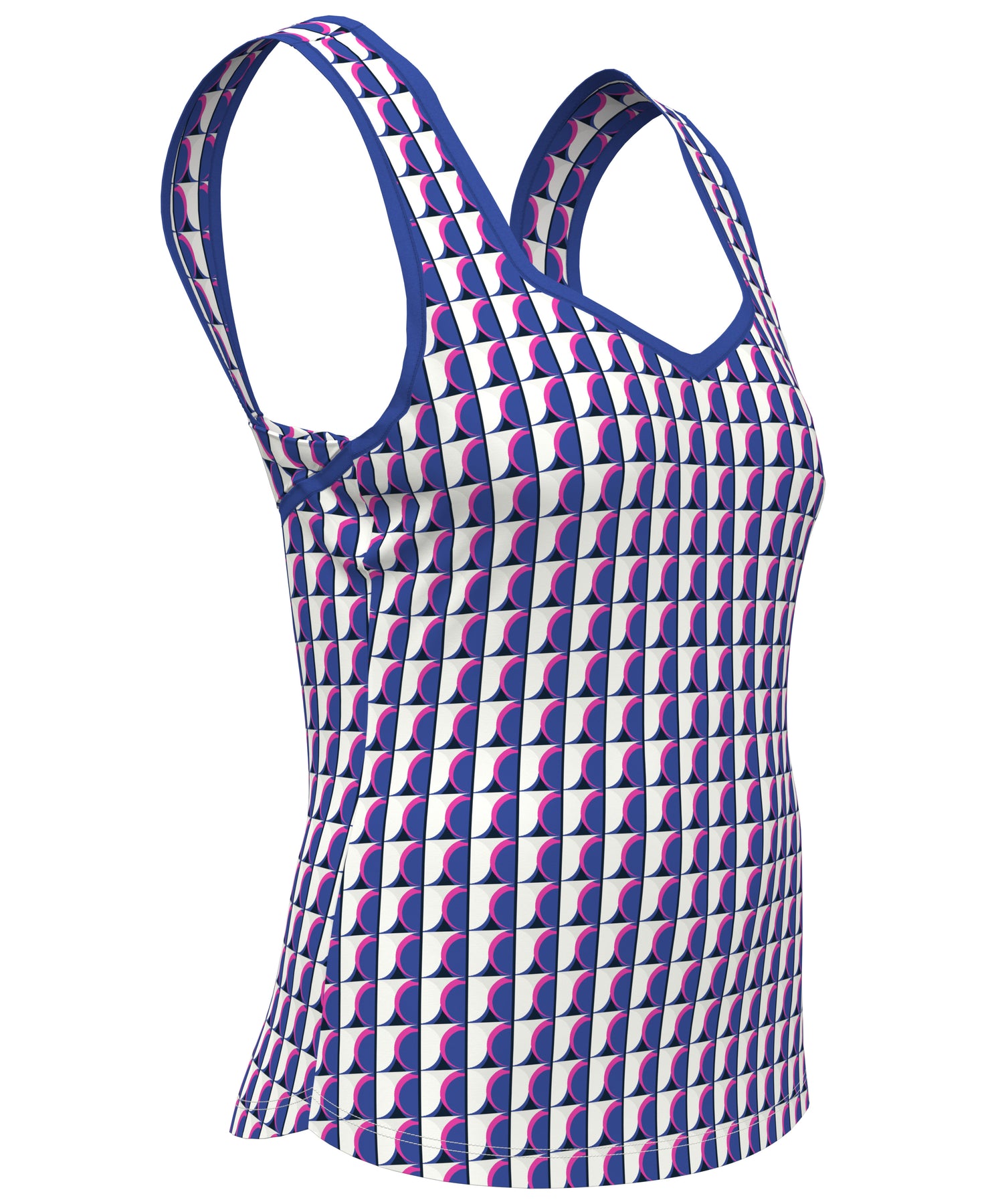 Offering a great balance of fashion and sustainability, this Original Penguin women’s tennis tank top is crafted from 44% recycled polyester. The tennis top is made from a lightweight single knit fabric that’s been enhanced with stretch for a comfortable and flattering fit. Moisture-wicking technology helps to keep you cool and dry, while a geometric print, back knot detail and sweetheart neckline add modern feminine style to the design.