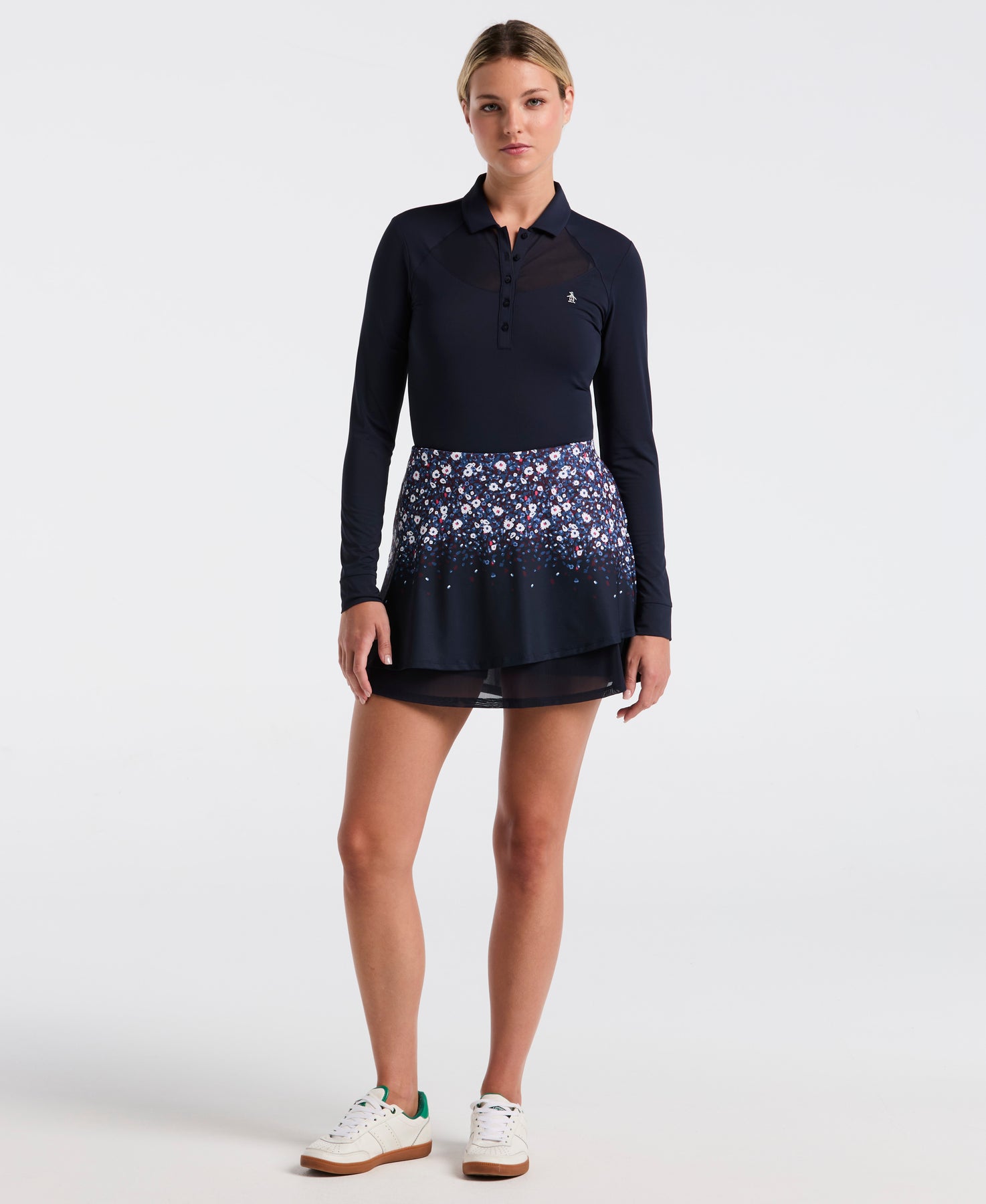 Featuring a fresh floral print, this Original Penguin women's skort will add some style to your sporty wardrobe. Crafted from a lightweight single knit fabric, this comfortable skort is enhanced with stretch to allow for a flexible fit that moves with you. The material wicks away moisture to help keep you feeling dry and confident from the first tee to the final green. The skort incorporates recycled polyester, making it a smart and stylish choice.